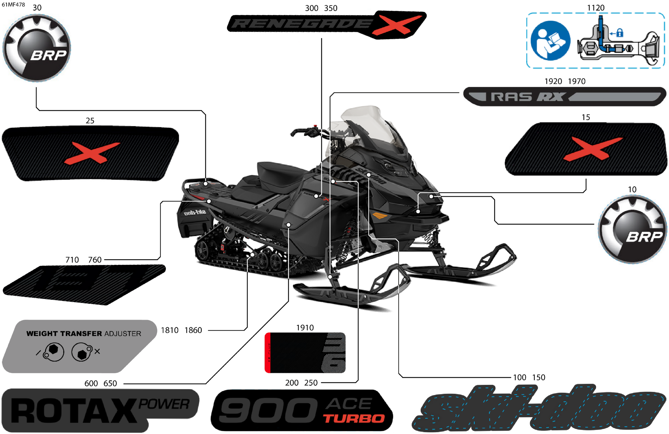 Ski-Doo North America - RENEGADE - X - 900 ACE TURBO - DXTB - Deep Black - 15X137X1.25IR Track, 2026 07- Body - Decals Diagram