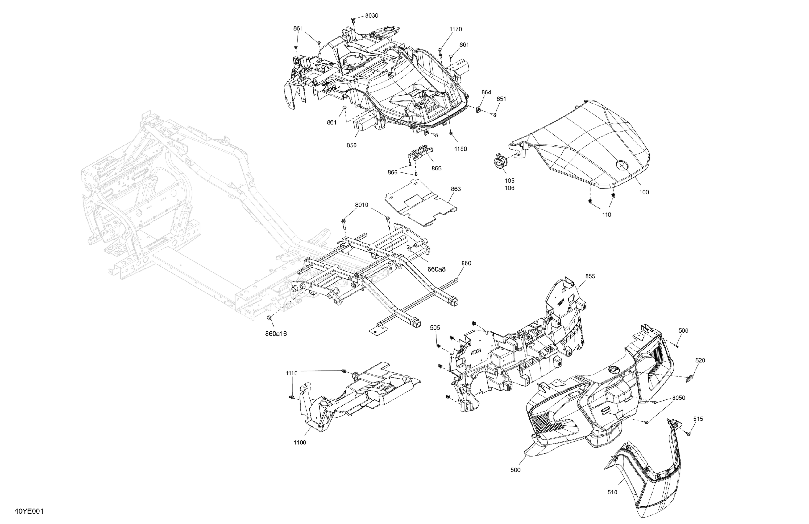 Can-Am On-Road North America - RT STD - B2SA - Hyper Silver, 2025 07- Body - Cargo Structure And Rear Fenders Diagram