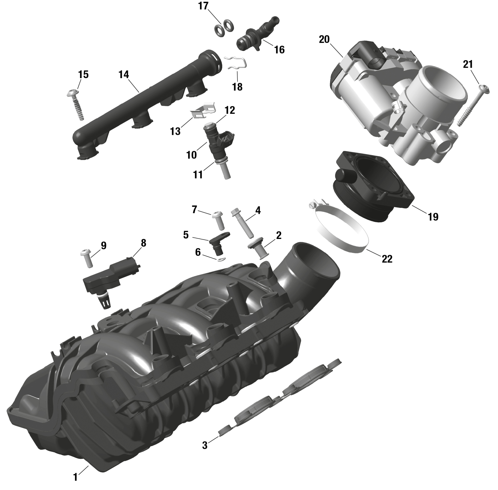 Can-Am RYKER 600 ACE - F1RA - STD - Deep Black, 2024 ROTAX - Air Intake Manifold And Throttle Body Diagram