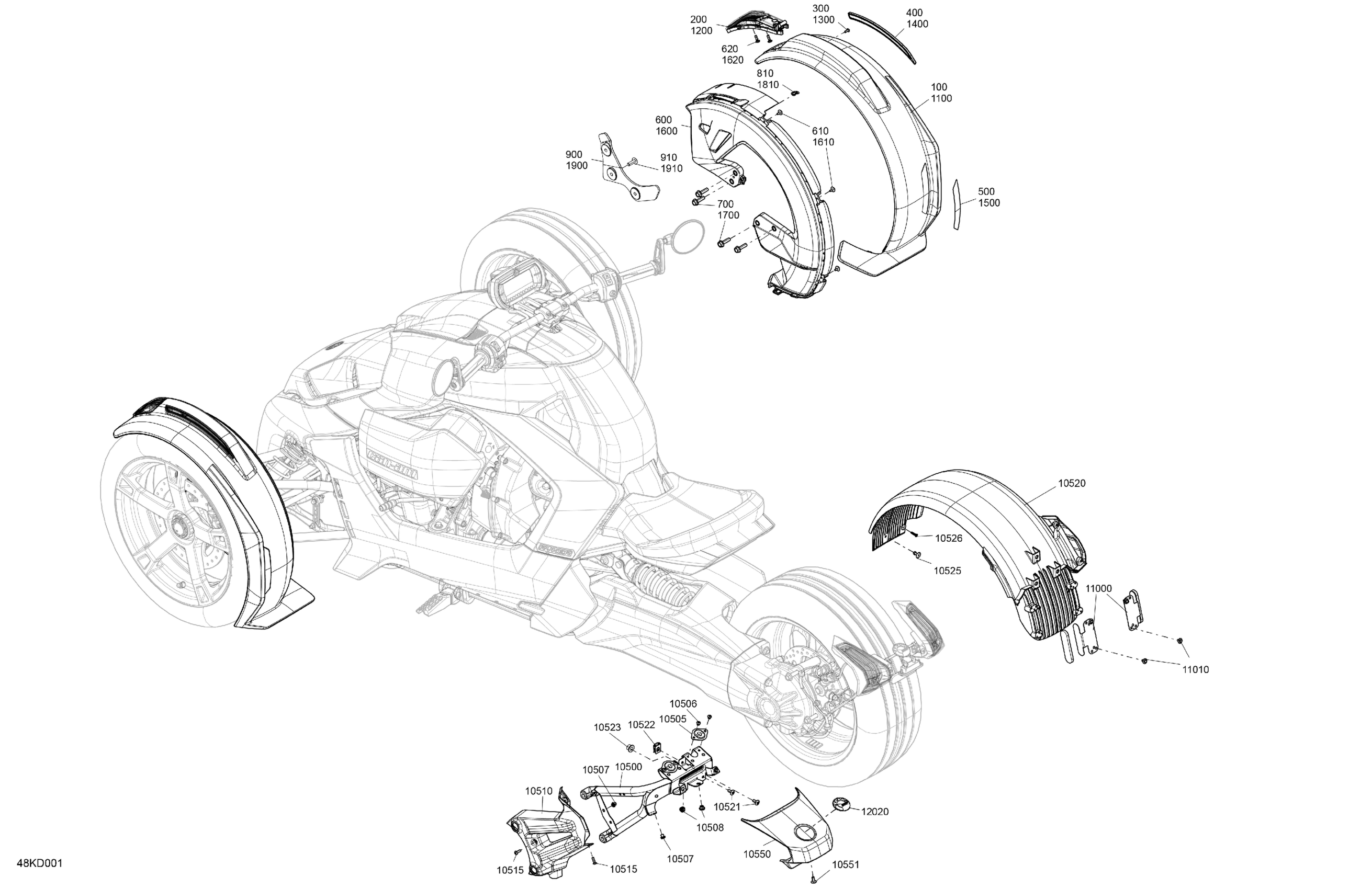 Can-Am RYKER 600 ACE - F1RA - STD - Deep Black, 2024 Body - Fender Kit Diagram