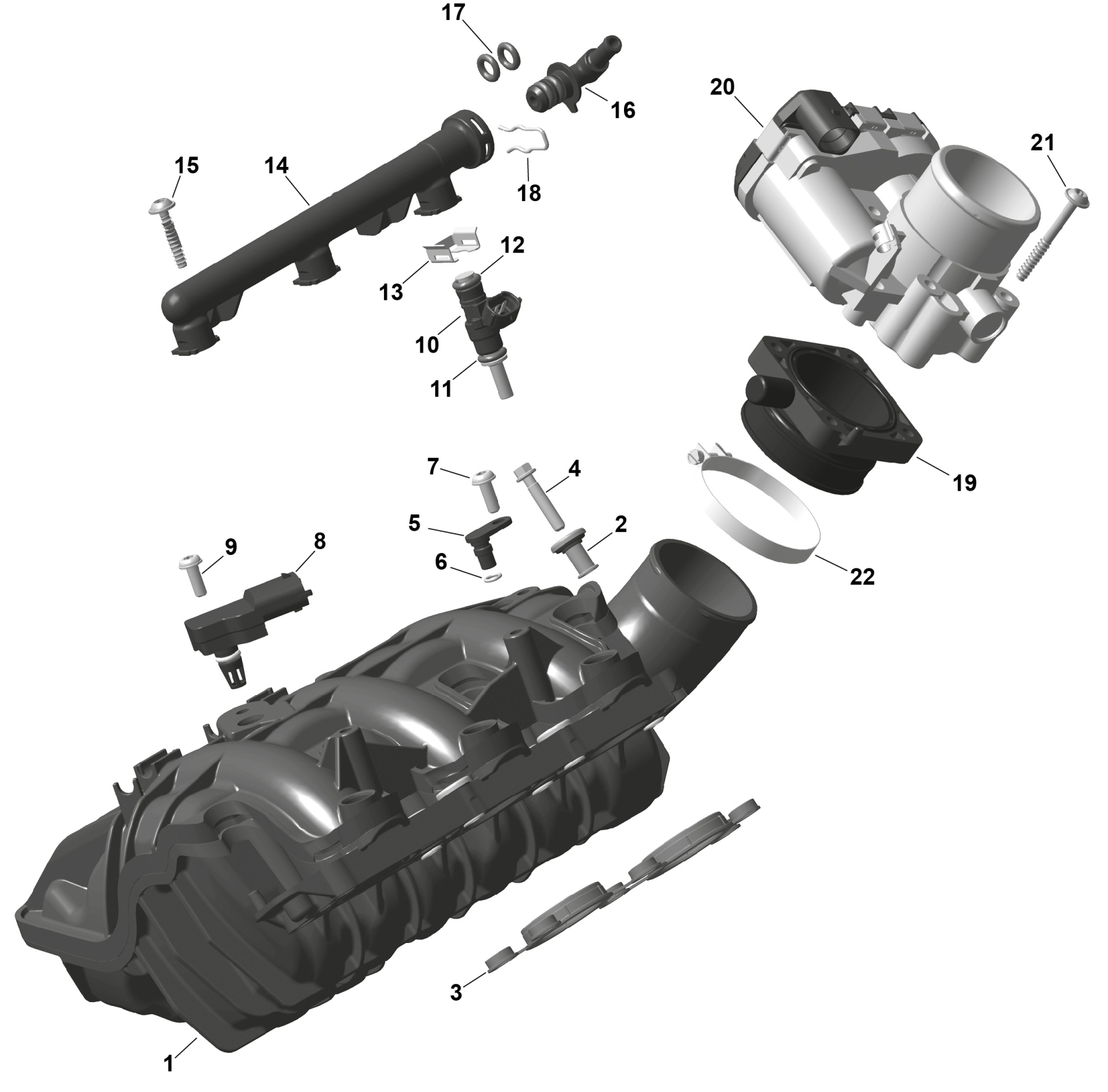 Can-Am RYKER - STD - 600 ACE - F1TA - Deep Black, 2026 ROTAX - Air Intake Manifold And Throttle Body Diagram