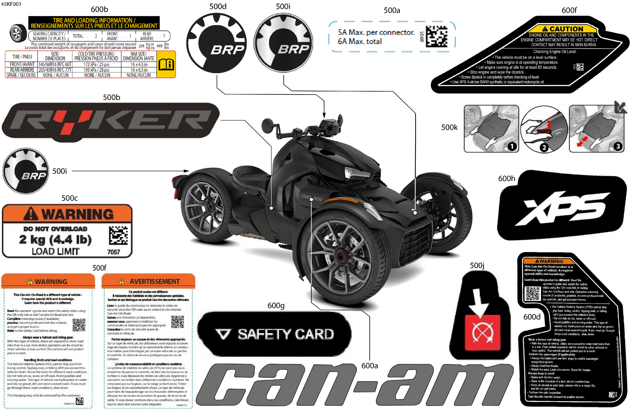 Can-Am RYKER - STD - 600 ACE - F1TA - Deep Black, 2026 Body - Decals Diagram