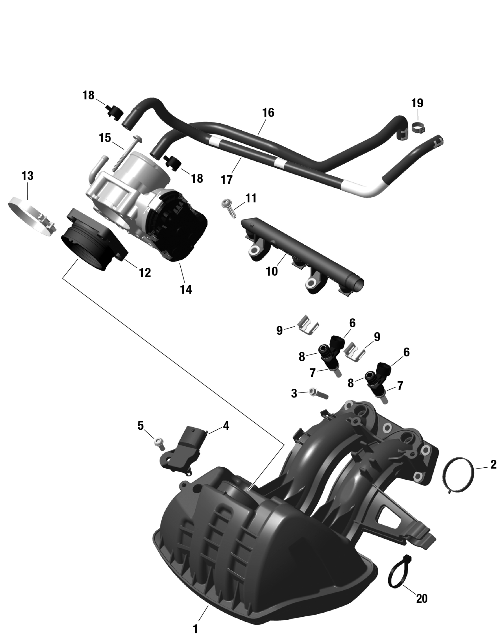 Ski-Doo SKANDIC 600 ACE - LE - AKRA - Deep Black - 154X20X1.5CST Track, 2024 ROTAX - Air Intake Manifold And Throttle Body Diagram