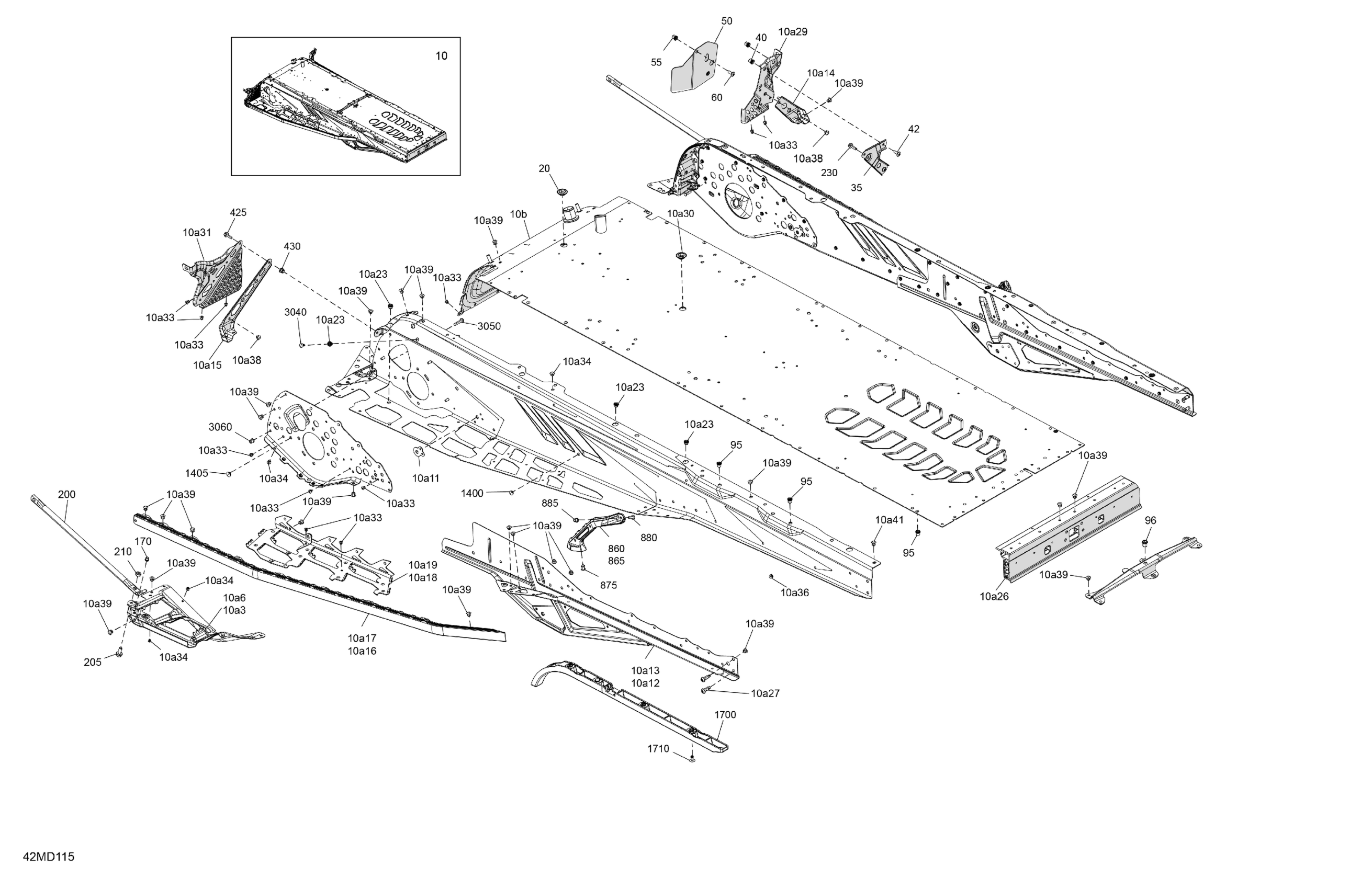 Ski-Doo North America - SKANDIC 600 ACE - LE - AKRA - Deep Black - 154X20X1.5CST Track, 2024 06- Frame - System - Rear Section Diagram