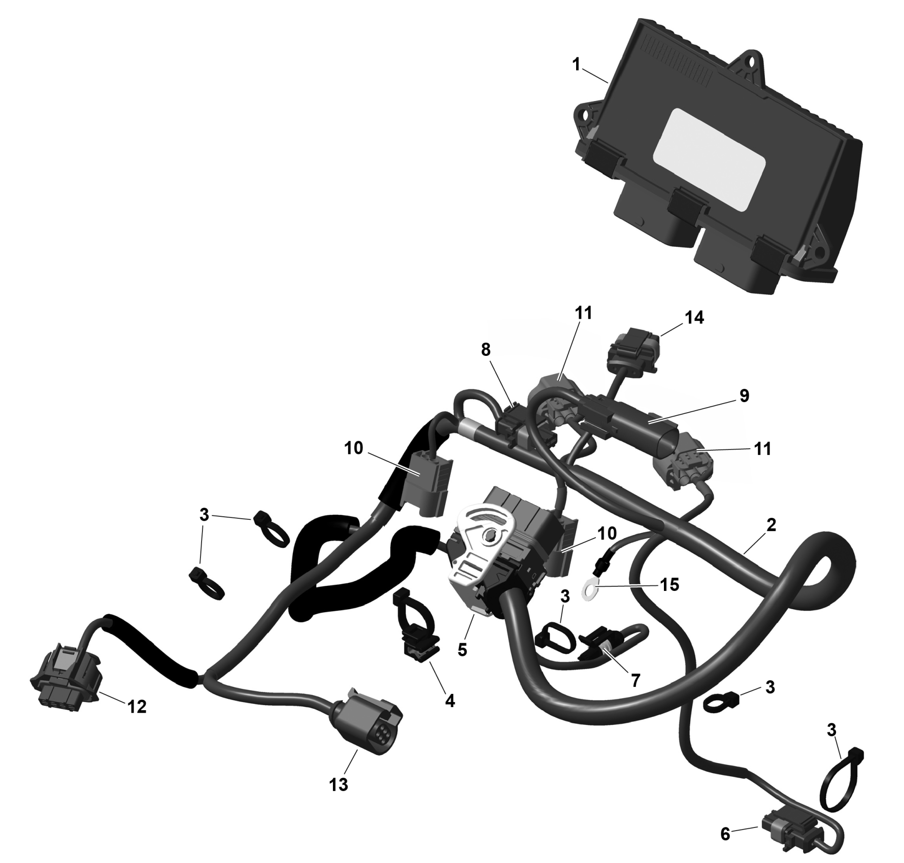 Ski-Doo SKANDIC - 600 ACE - LE - AKSA - Deep Black - 154X20X1.5CST Track - 2025 ROTAX - Engine Harness And Electronic Module Diagram