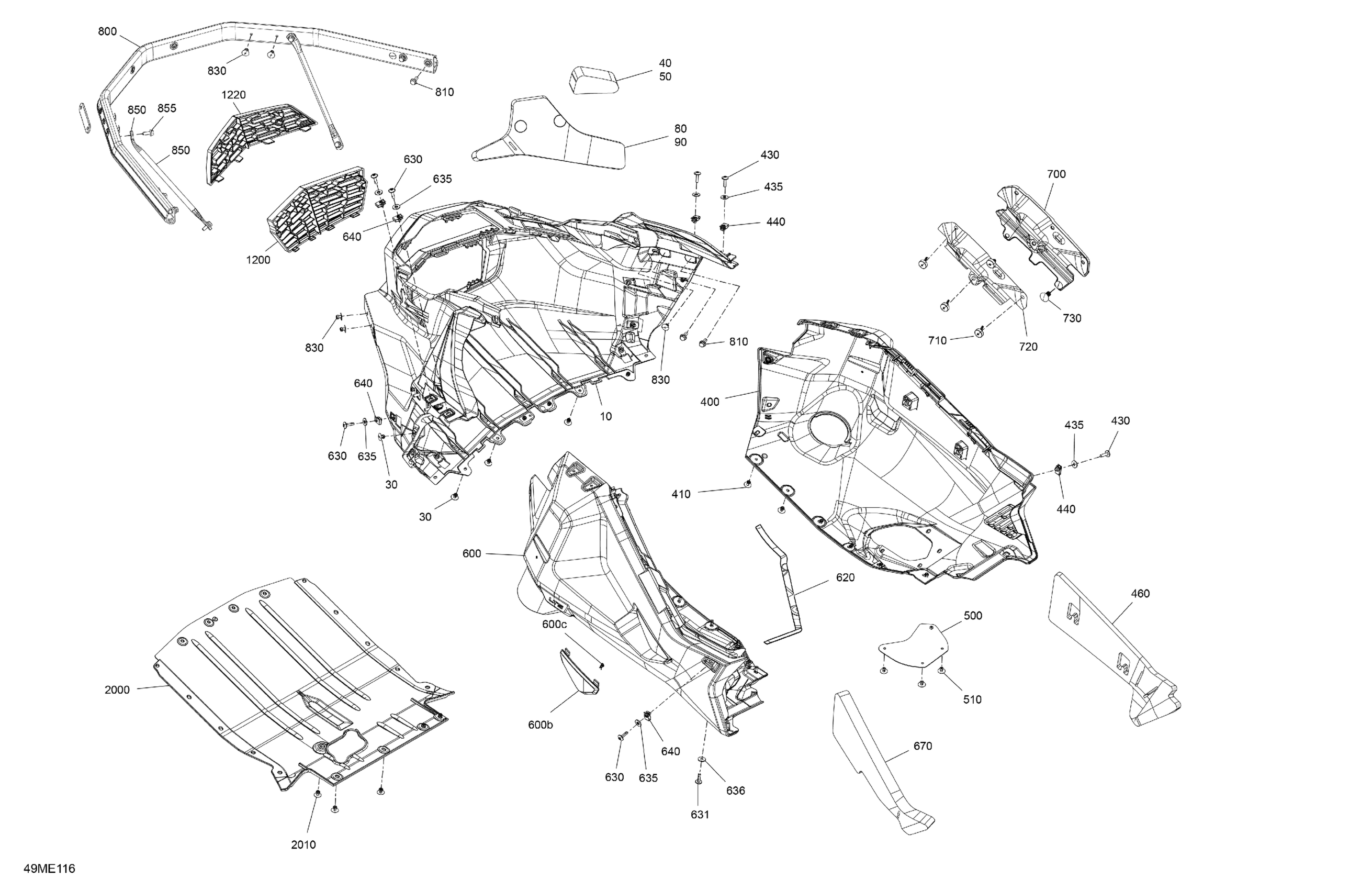 Ski-Doo North America - SKANDIC - 600 ACE - LE - AKSA - Deep Black - 154X20X1.5CST Track - 2025 07- Body - Bottom Pan Diagram