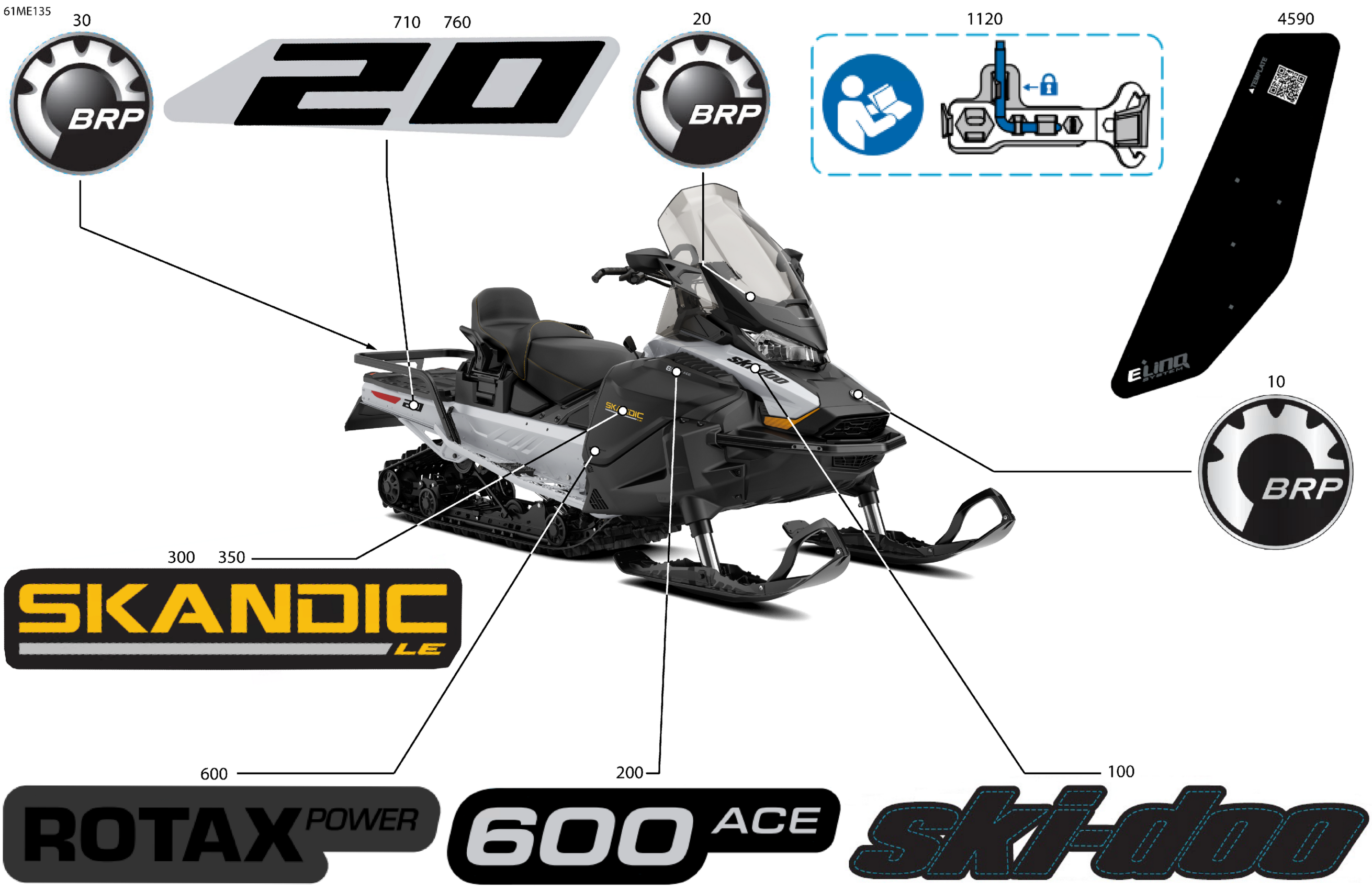 Ski-Doo North America - SKANDIC - 600 ACE - LE - AKSB - Catalyst Gray - 154X20X1.5CST Track - 2025 07- Body - Decals Diagram