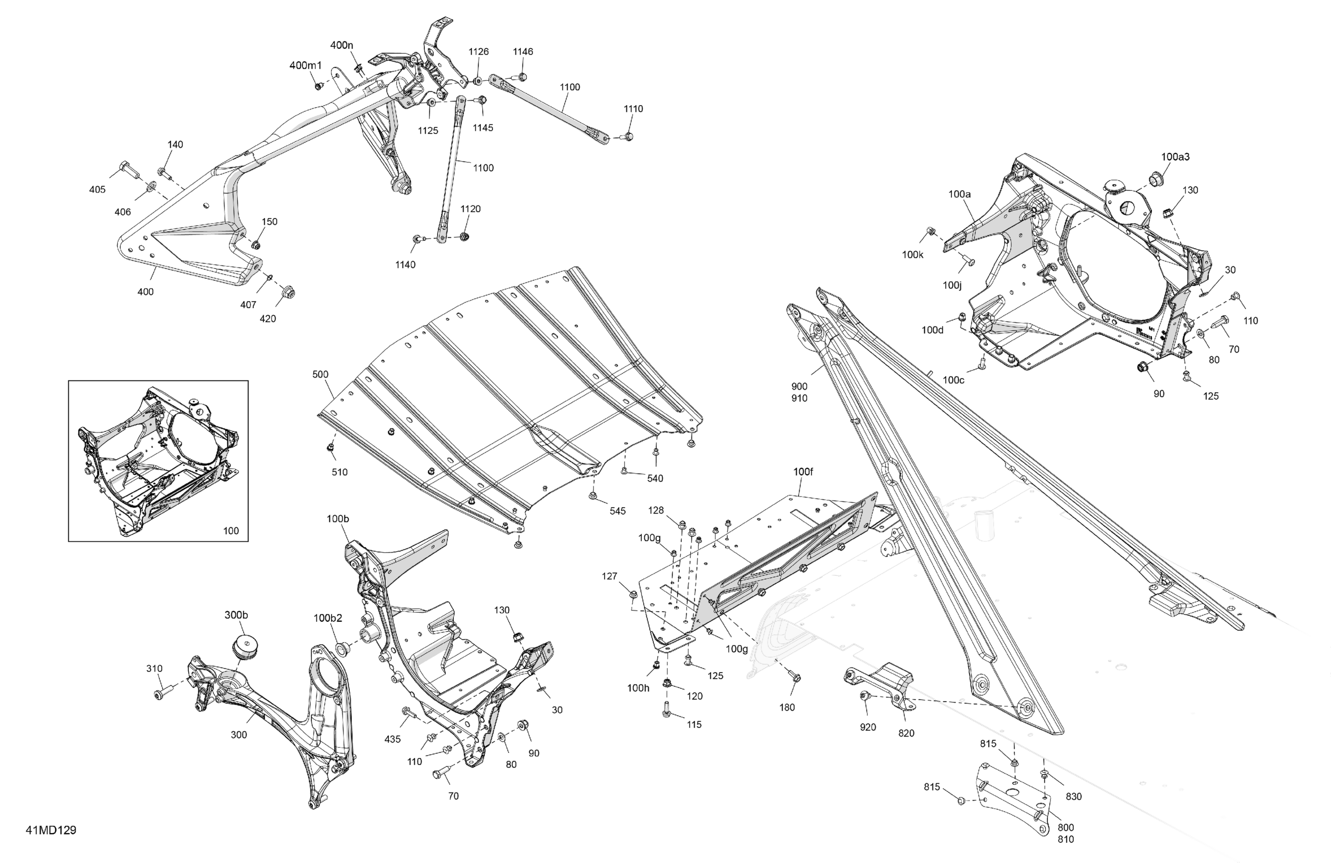Ski-Doo North America - SKANDIC 600 EFI - LE - ATRB - Northern Lichen - 154X20X1.5CST Track, 2024 06- Frame - System - Front Section Diagram