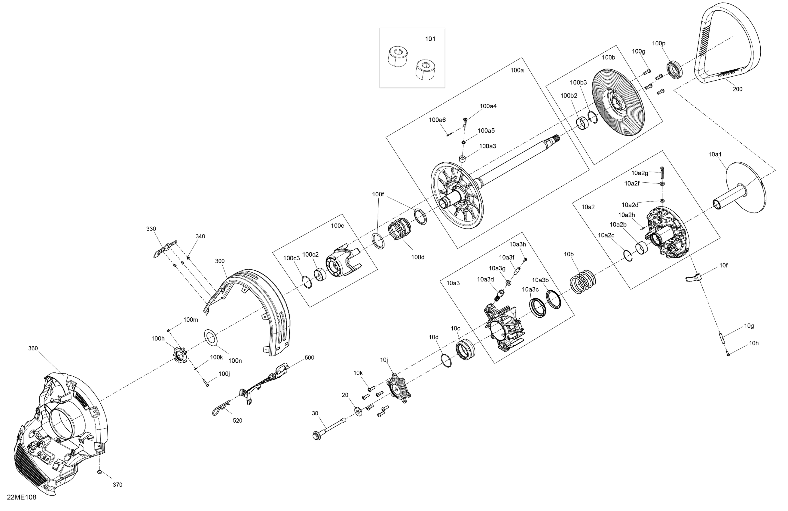 Ski-Doo North America - SKANDIC - 600 EFI - LE - ATSA - Catalyst Gray - 154X20X1.5CST Track - 2025 04- Drive - Pulley Diagram