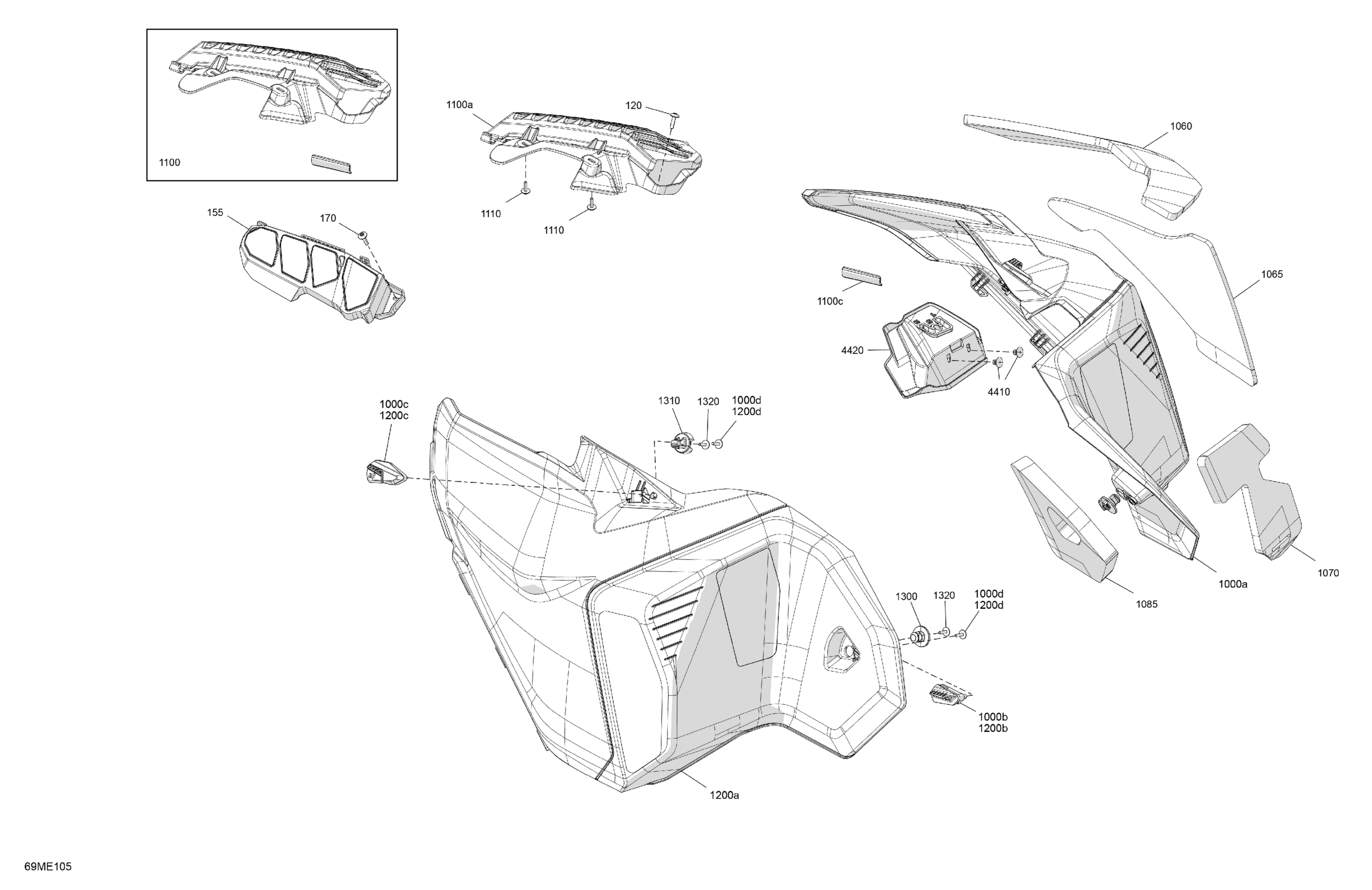 Ski-Doo North America - SKANDIC - 600 EFI - LE - ATSA - Catalyst Gray - 154X20X1.5CST Track - 2025 07- Body - Side Panels Diagram