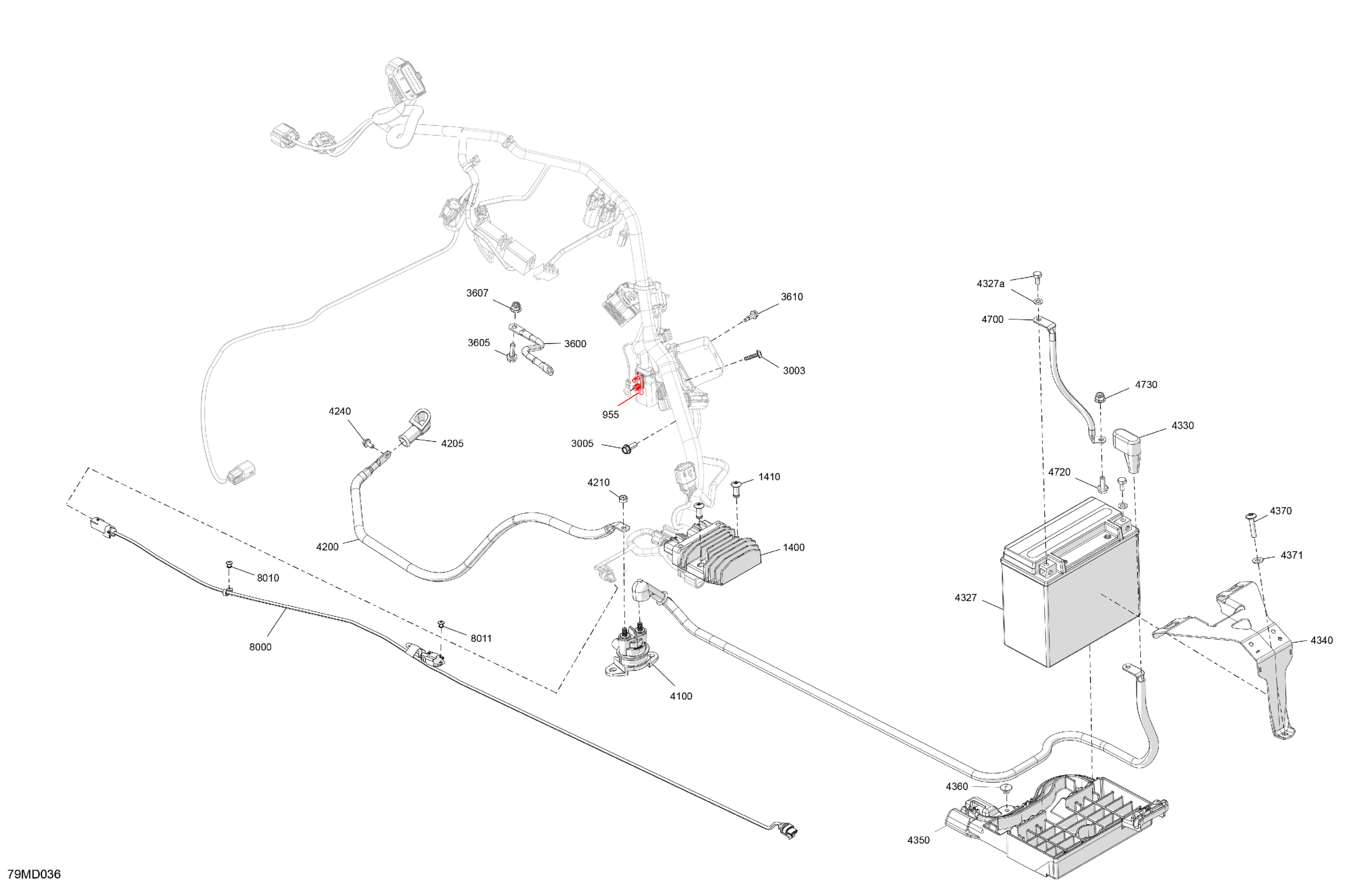Ski-Doo North America - SKANDIC 600 EFI - SPORT - AJRA - Neo Yellow - 154X20X1.25WT Track, 2024 08- Electric - Lower Section Diagram