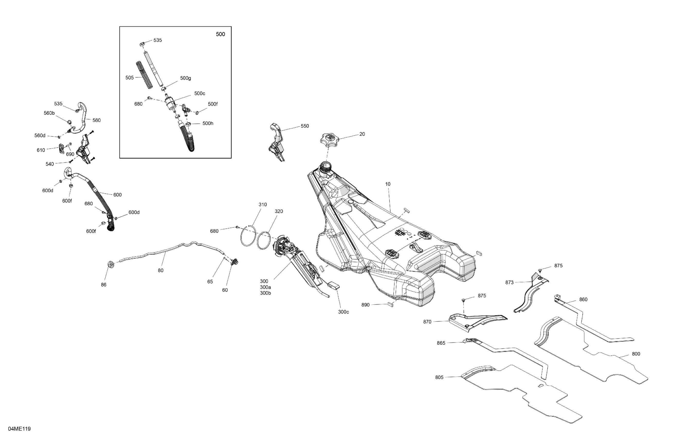 Ski-Doo North America - SKANDIC - 600R E -TEC - LE - ALSA - Catalyst Gray - 154X24X1.5CST Track - 2025 02- Engine - Fuel Diagram