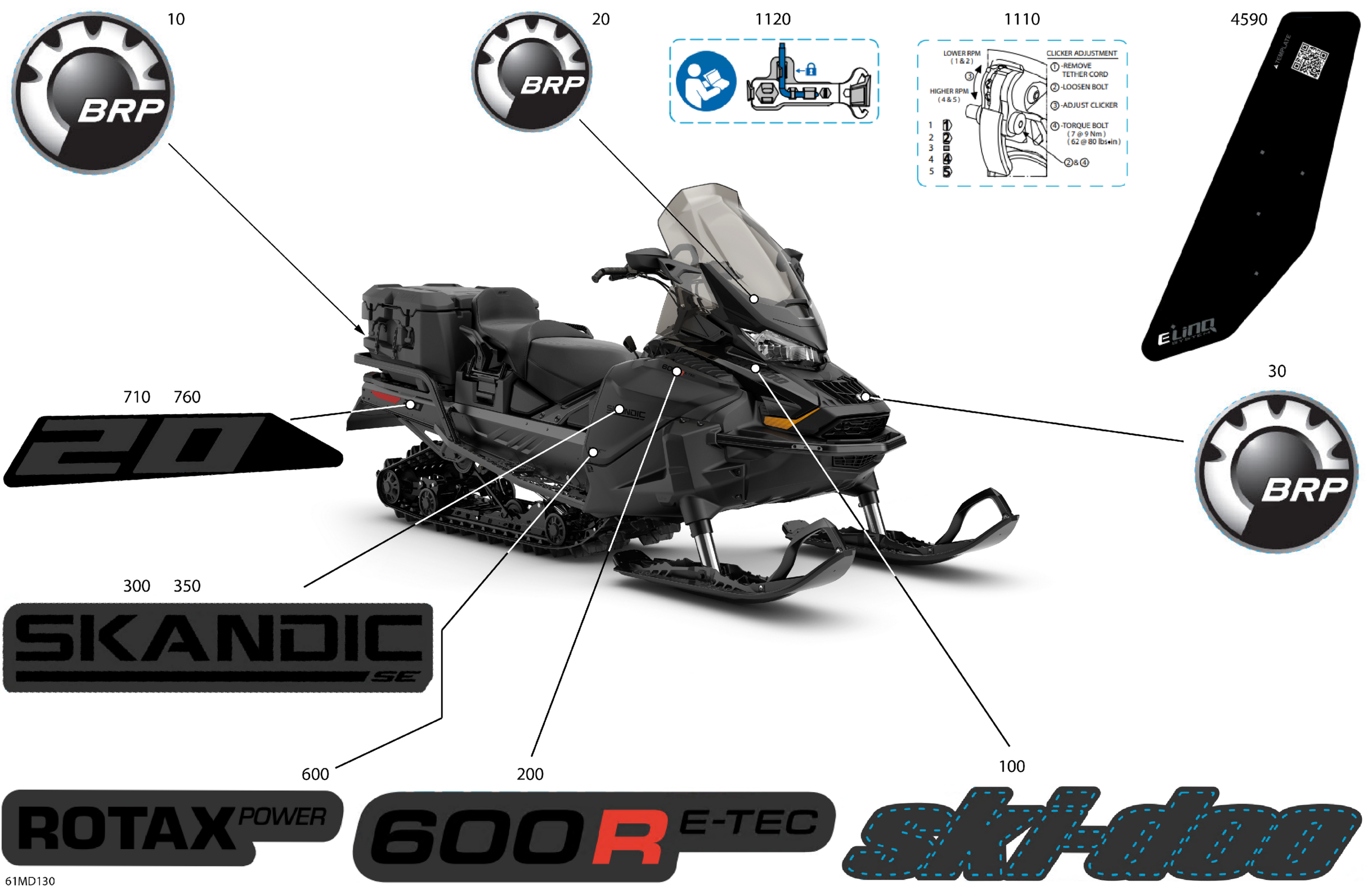 Ski-Doo North America - SKANDIC 600R E-TEC - SE - ALRE - Deep Black - 154X20X1.8C Track, 2024 07- Body - Decals Diagram