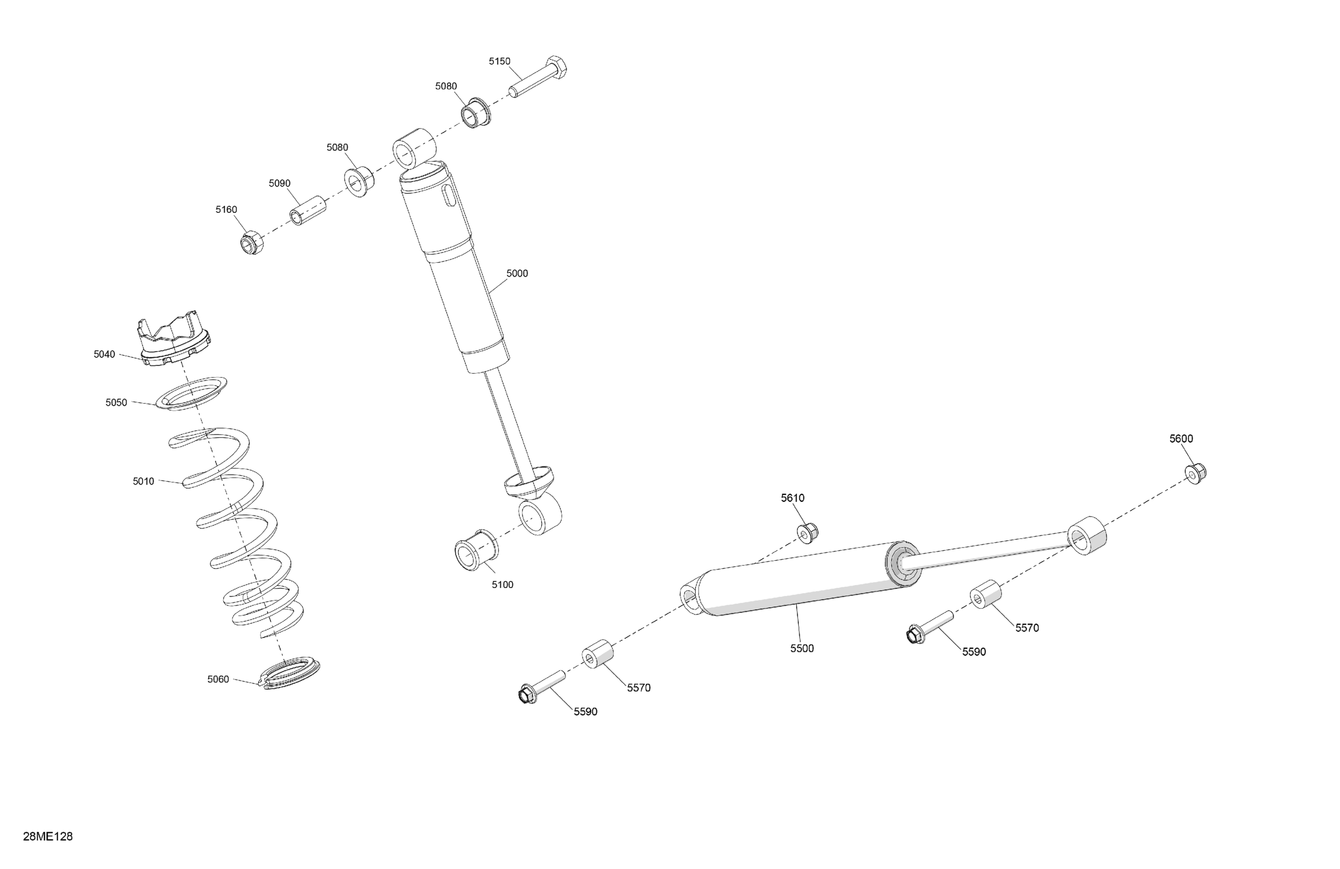Ski-Doo SKANDIC - 600R E -TEC - SE - AUSA - Deep Black - 154X24X1.5CST Track - 2025 Suspension - Rear Shocks Diagram