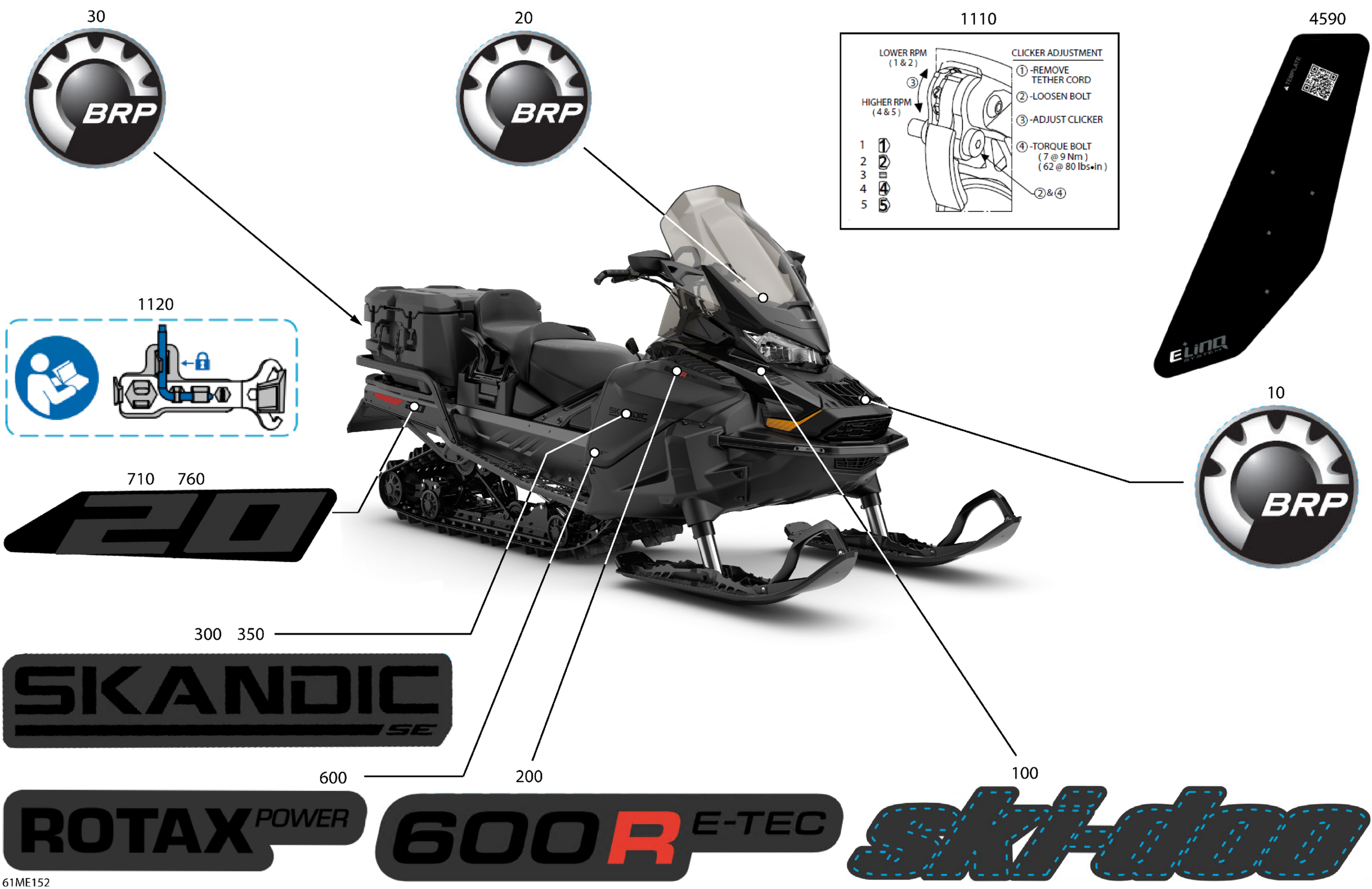 Ski-Doo North America - SKANDIC - 600R E -TEC - SE - AUSE - Deep Black - 154X20X1.5ICST Track - 2025 07- Body - Decals Diagram