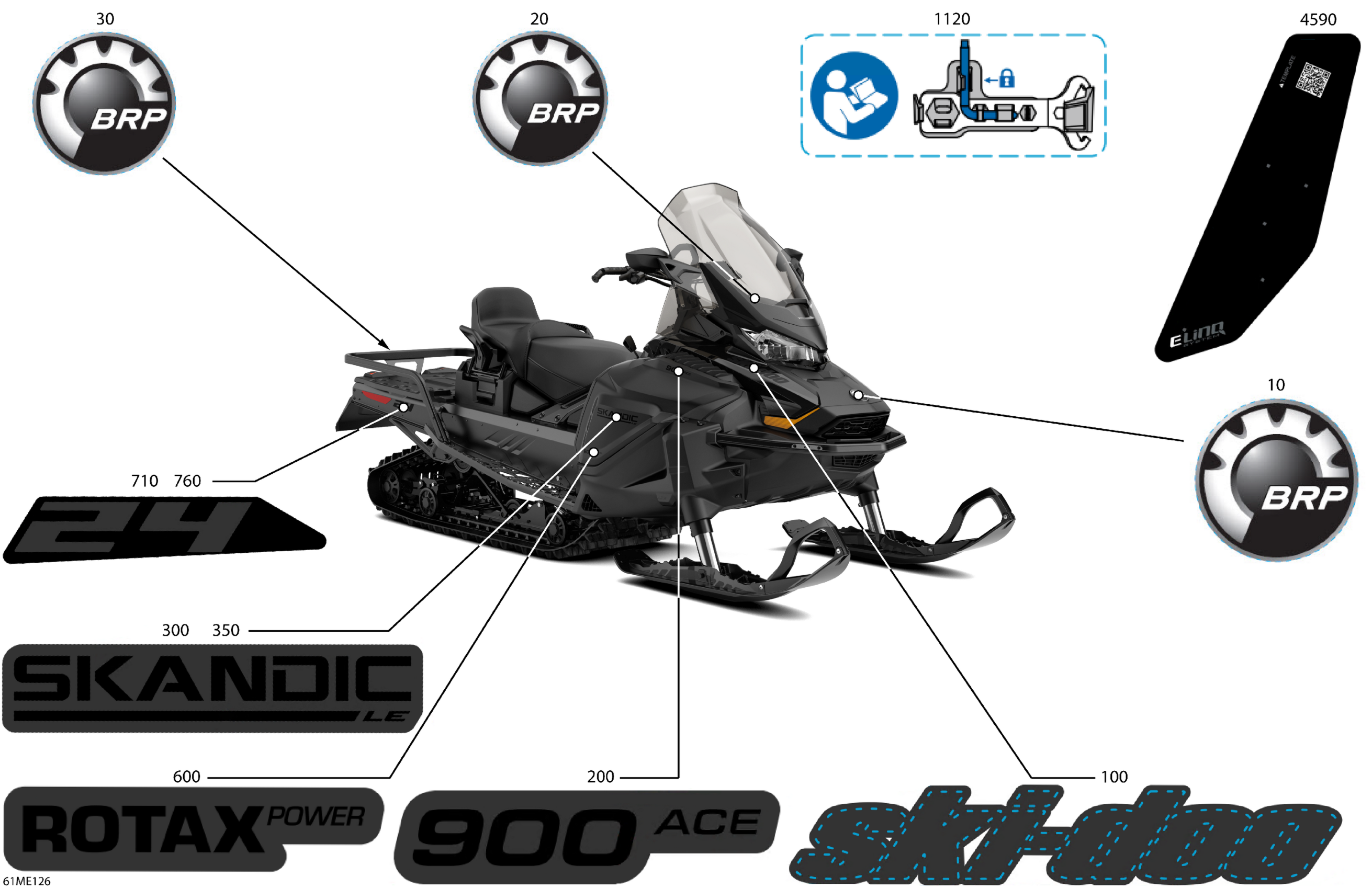 Ski-Doo North America - SKANDIC - 900 ACE - LE - AHSA - Deep Black - 154X24X1.5CST Track - 2025 07- Body - Decals Diagram