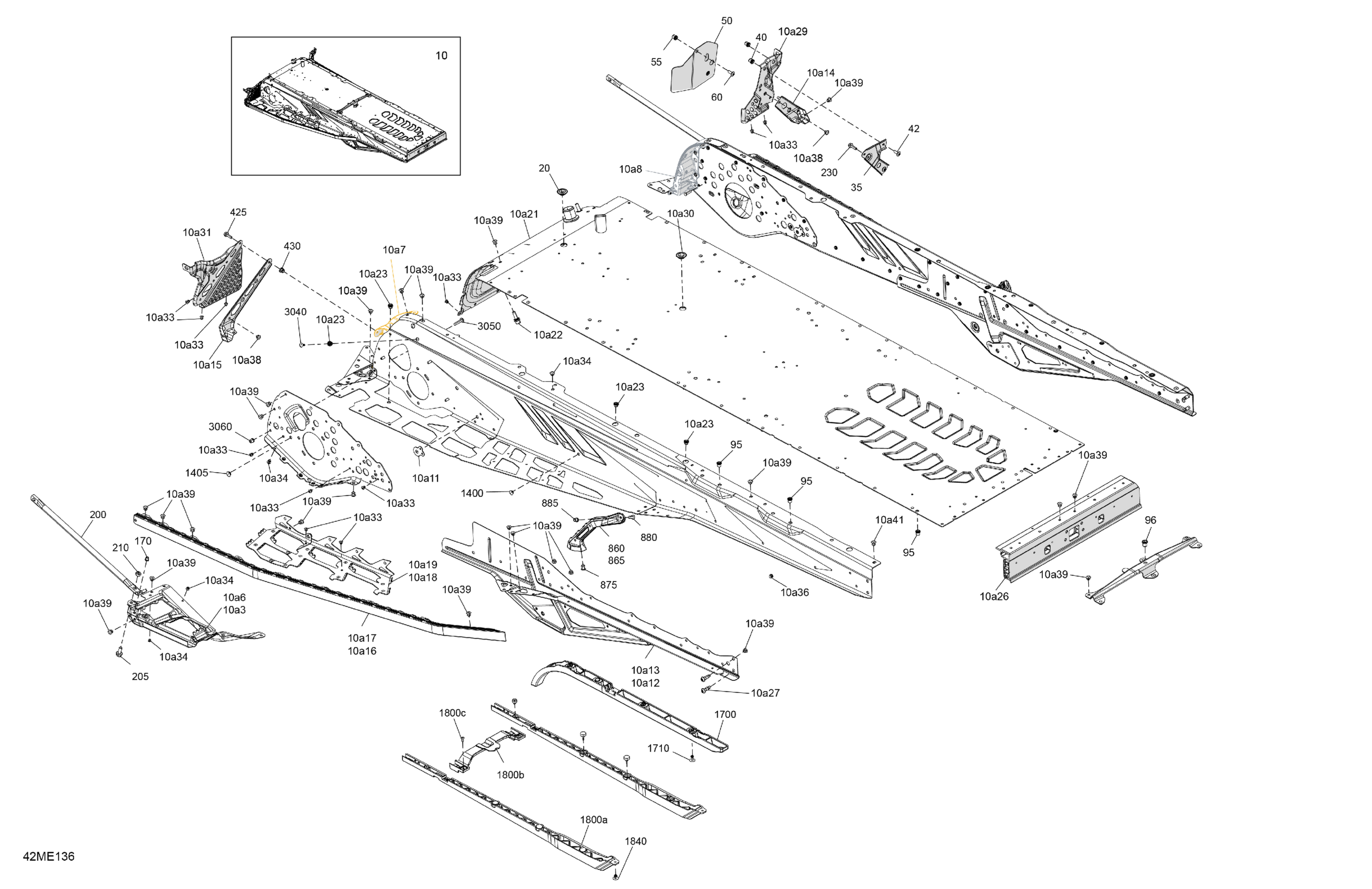 Ski-Doo North America - SKANDIC - 900 ACE - SE - ANSA - Deep Black - 154X20X1.5ICST Track - 2025 06- Frame - System - Rear Section Diagram