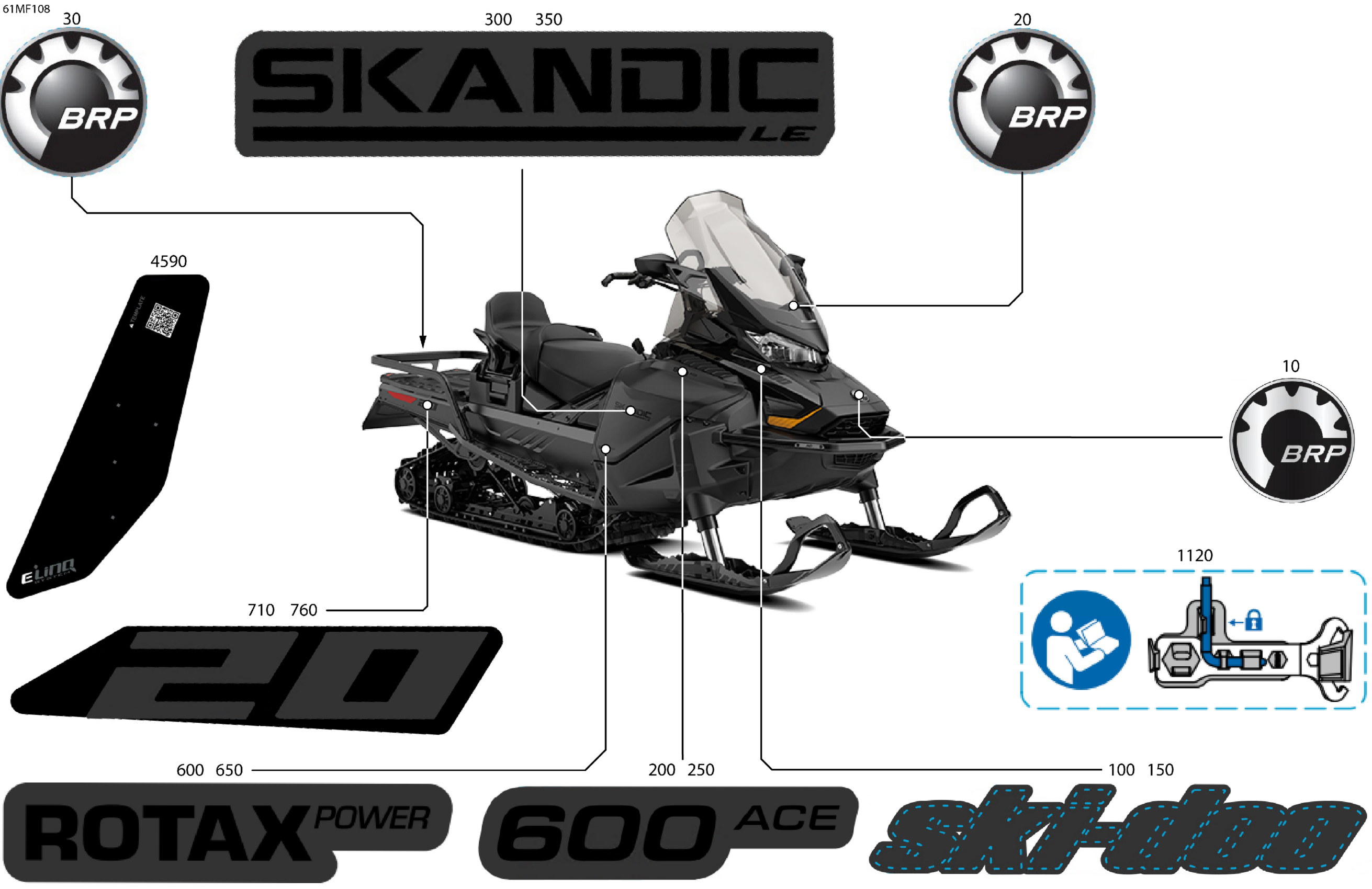 Ski-Doo North America - SKANDIC - LE - 600 ACE - AKTA - Deep Black - 20X154X1.5CST Track, 2026 07- Body - Decals Diagram