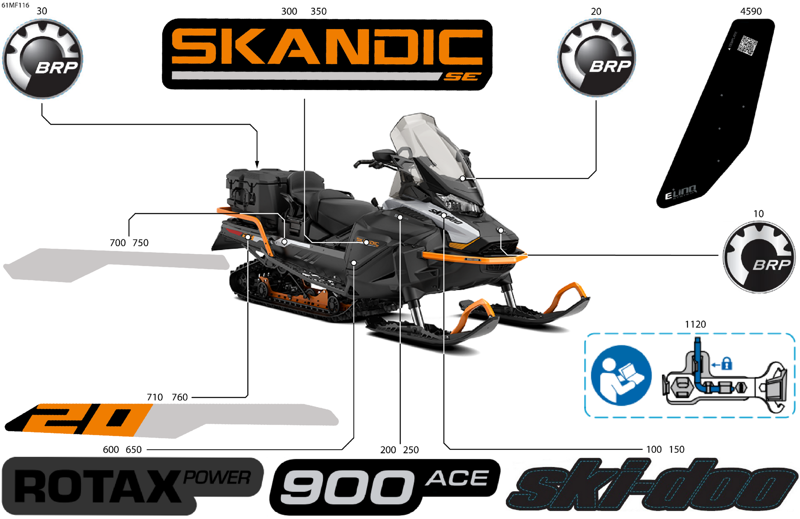 Ski-Doo North America - SKANDIC - SE - 900 ACE - ANTE - Catalyst Gray - 20X154X1.8C Track, 2026 07- Body - Decals Diagram