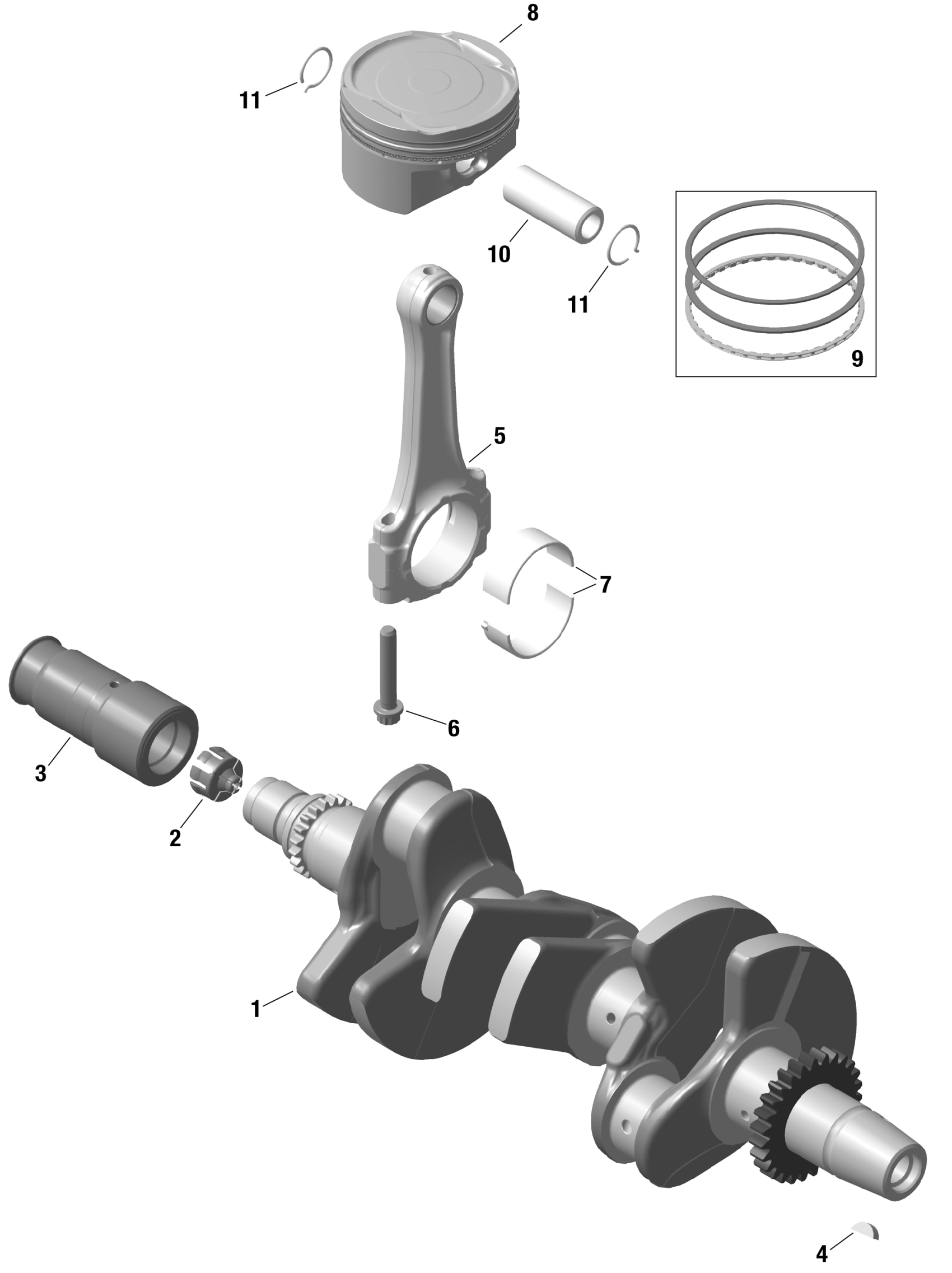 Sea-doo North America - SPARK 900 ACE - 61RA - Base package - Sunrise Orange - 2UP,2024 01- ROTAX - Crankshaft and Pistons Diagram