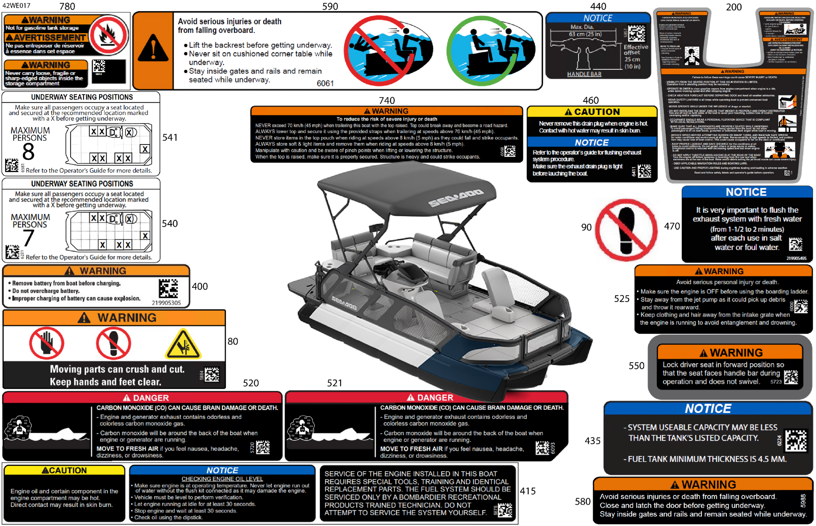 Sea-doo North America - SPORT 18 - 230 - 48SA - Dusty Navy - Trailer Paint - CAT2B - 2025 06- BODY - Warning Decals Diagram