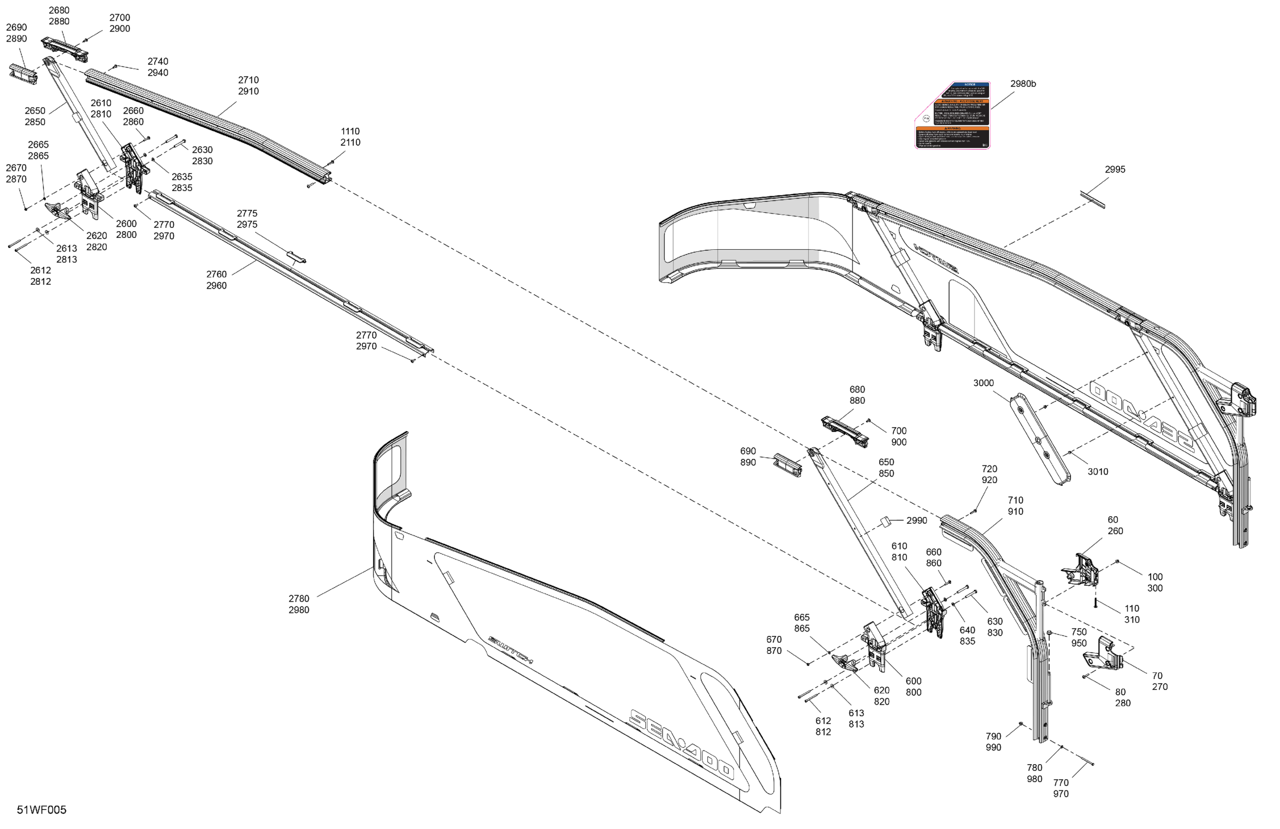 Sea-doo SPORT Compact - 170 - 47TA - Neo Mint - Trailer paint - CAT-NA - 2026 GUARD RAILS - System Assembly Diagram