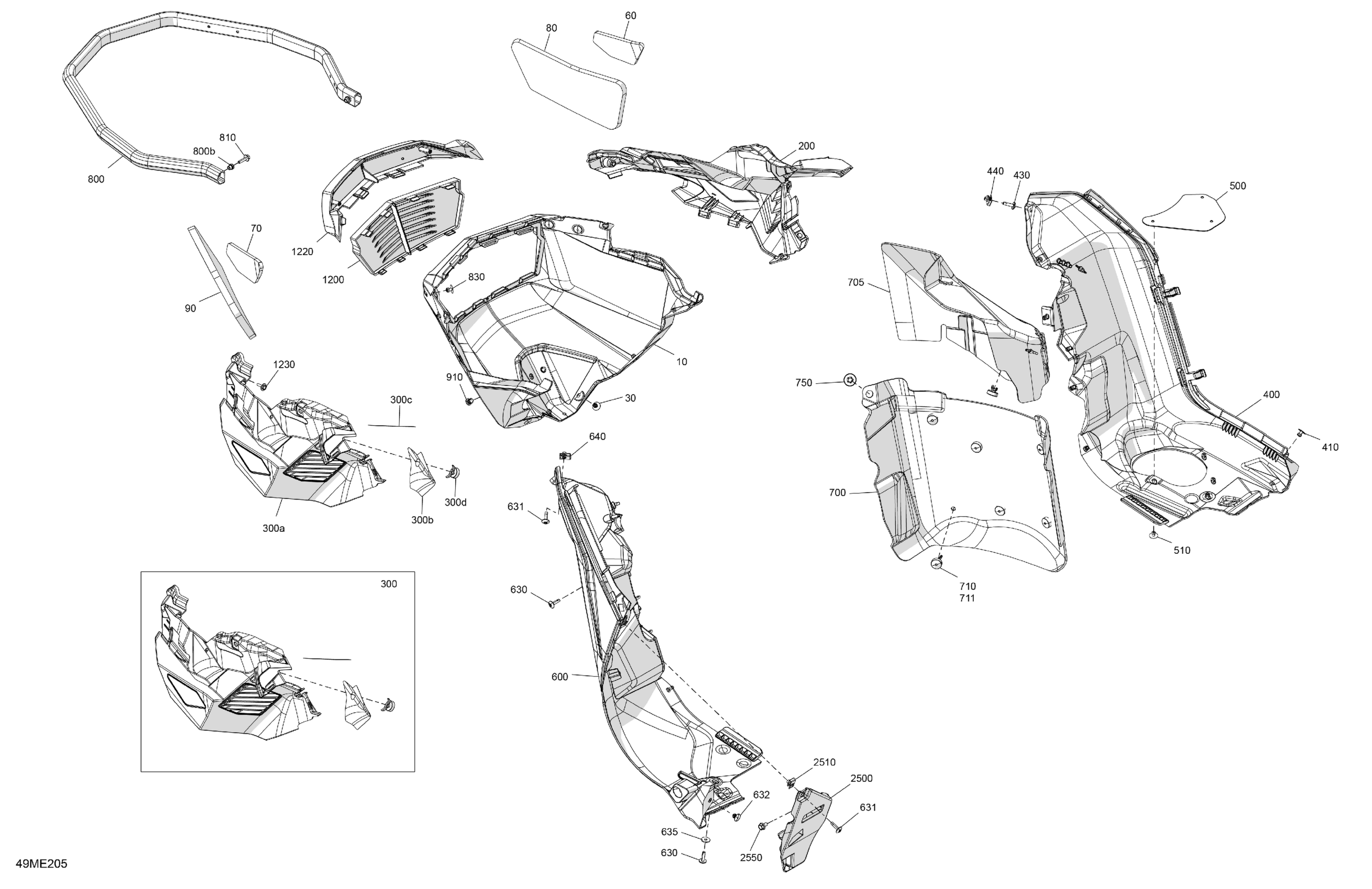 Ski-Doo North America - SUMMIT - 850 E-TEC - Adrenaline with Edge Package - CGSM - Carbon Black - 154X16X2.5PLF Track - 2025 07- Body - Bottom Pan Diagram