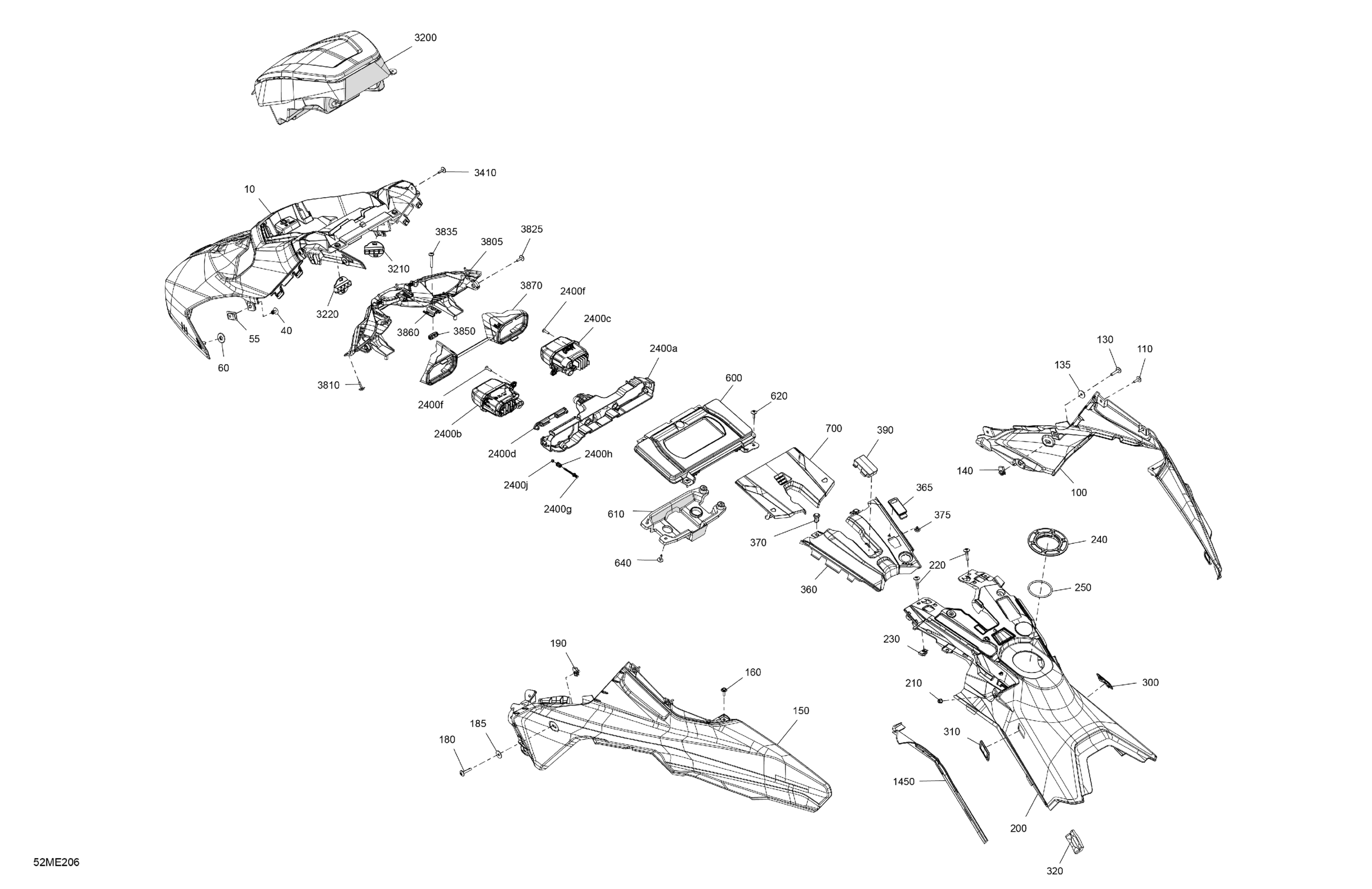 Ski-Doo North America - SUMMIT - 850 E-TEC - Adrenaline with Edge Package - CGSM - Carbon Black - 154X16X2.5PLF Track - 2025 07- Body - Hood Diagram