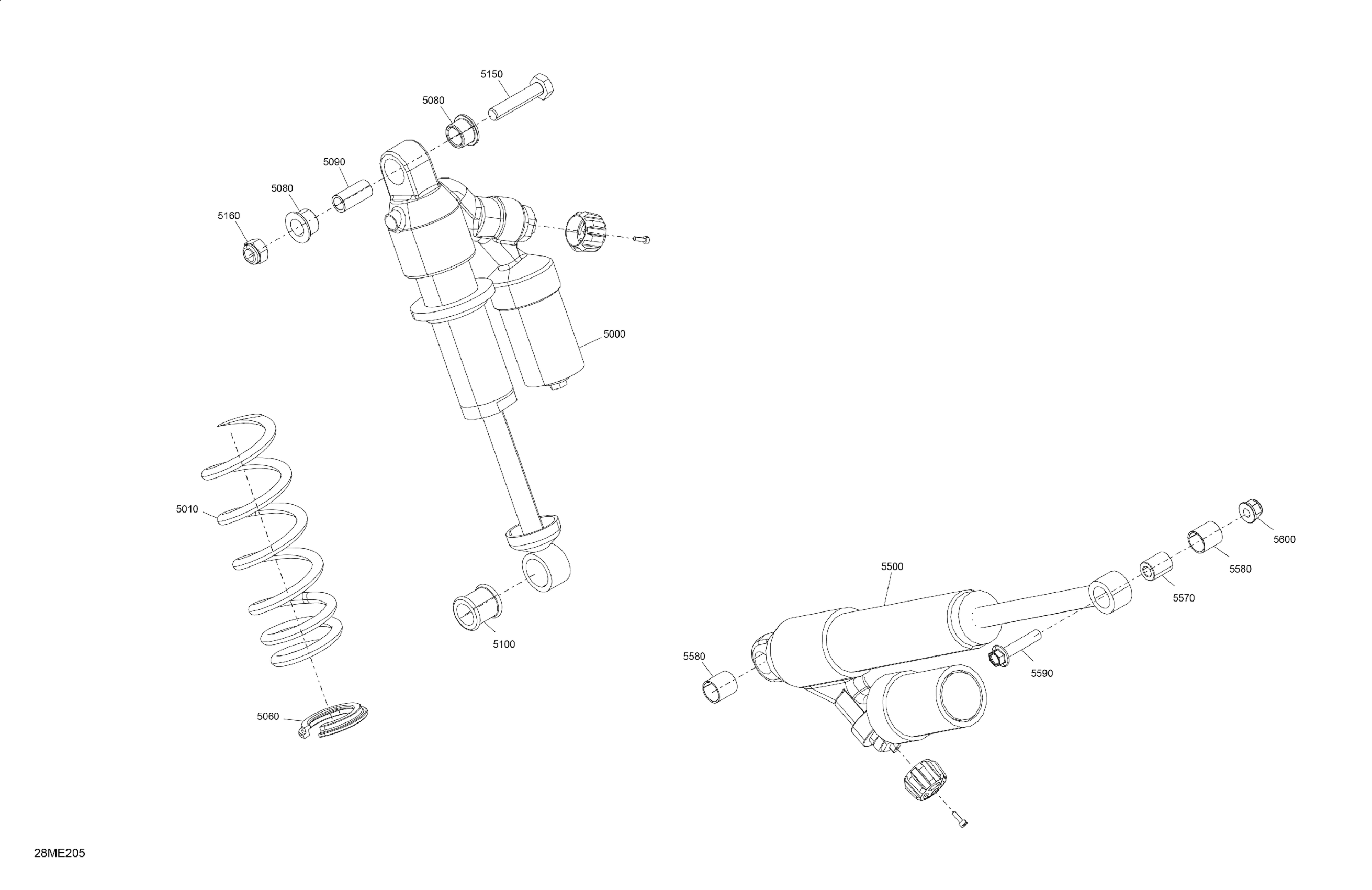 Ski-Doo SUMMIT - 850 E-TEC Turbo R - HCE - TKSB - Deep Black - 154X15X2.5P Track - 2025 Suspension - Rear Shocks Diagram