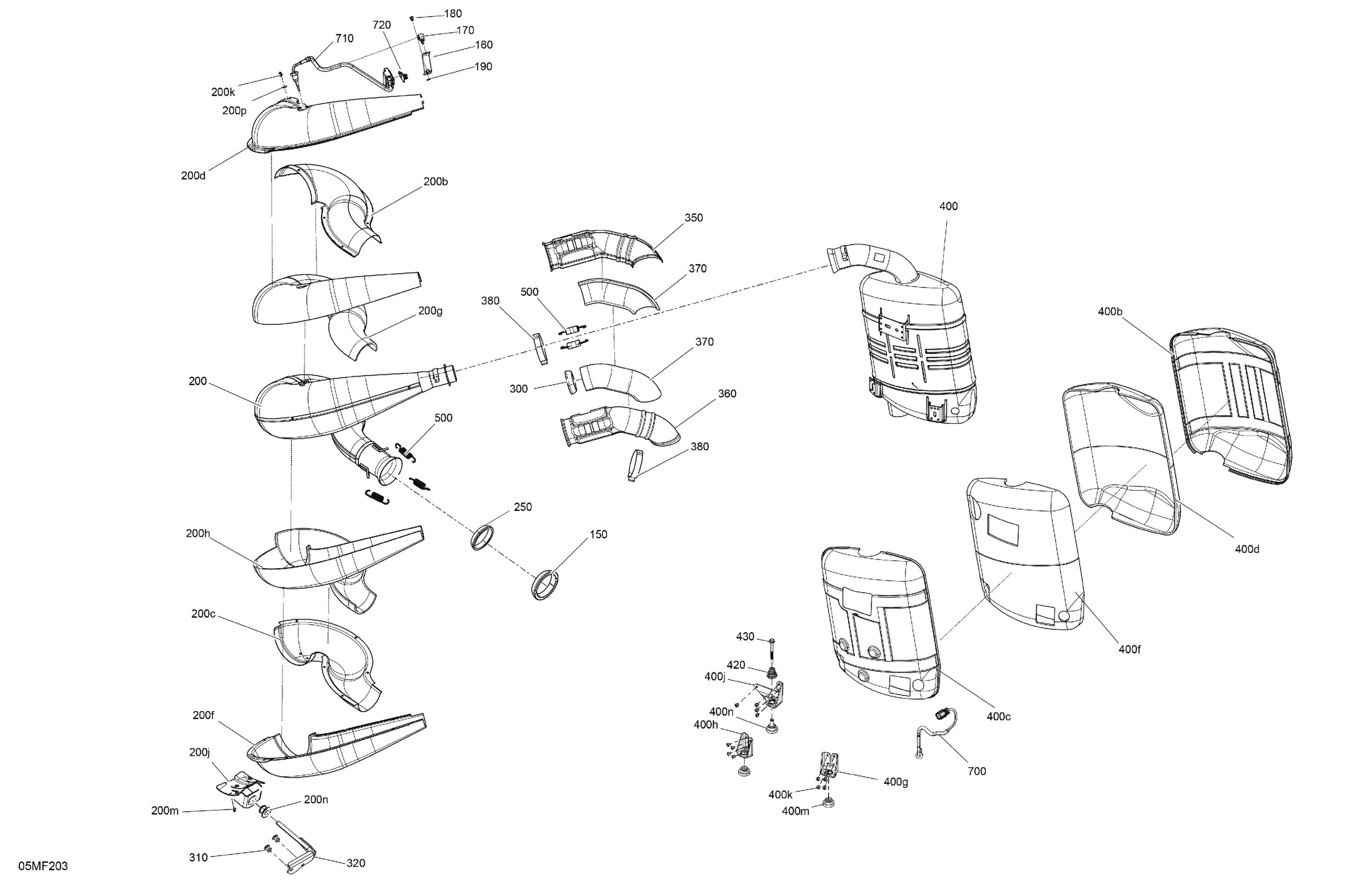 Ski-Doo North America - SUMMIT - Adrenaline - 850 E-TEC - CDTF - Catalyst Gray - 16X146X2.5PF Track, 2026 02- Engine - Exhaust Diagram