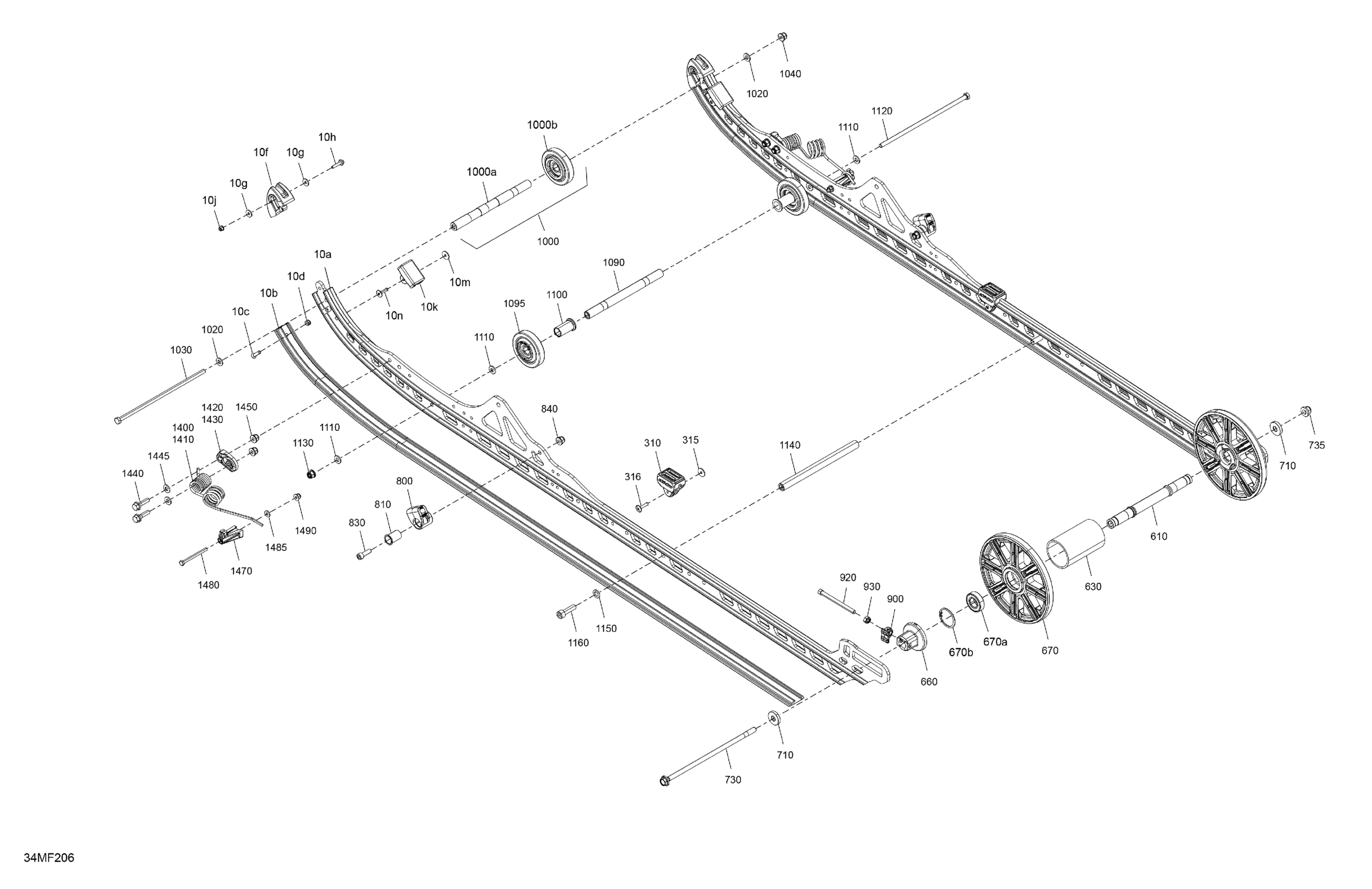 Ski-Doo North America - SUMMIT - Adrenaline with Enduro Package - 850 E-TEC - CHTA - Deep Black - 16X165X3P4F Track, 2026 05- Suspension - Rear - Lower Section Diagram