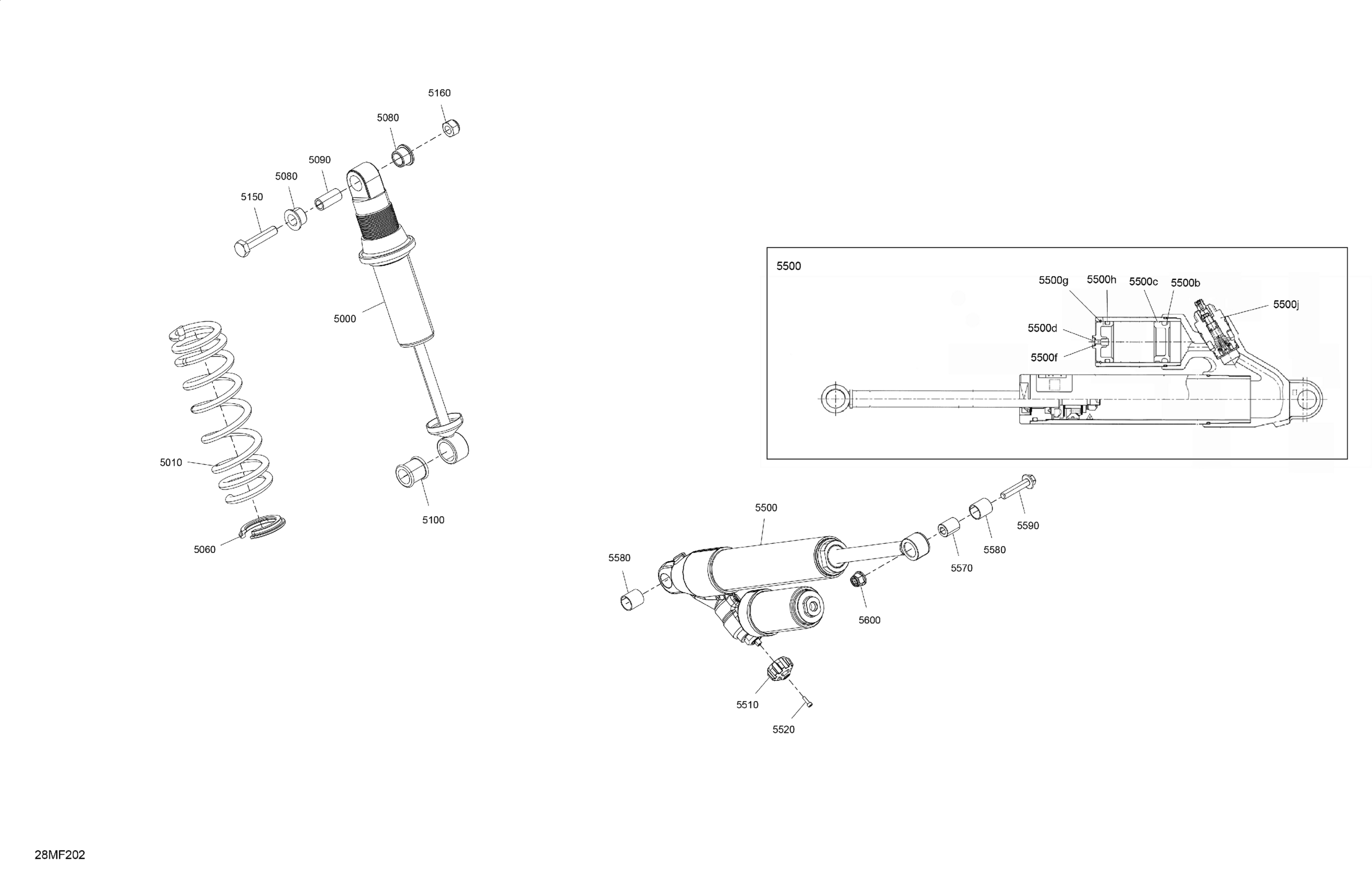 Ski-Doo SUMMIT - X with Expert Package - 850 E-TEC - TGTA - Deep Black - 16X154X2.5PL Track, 2026 Suspension - Rear Shocks Diagram
