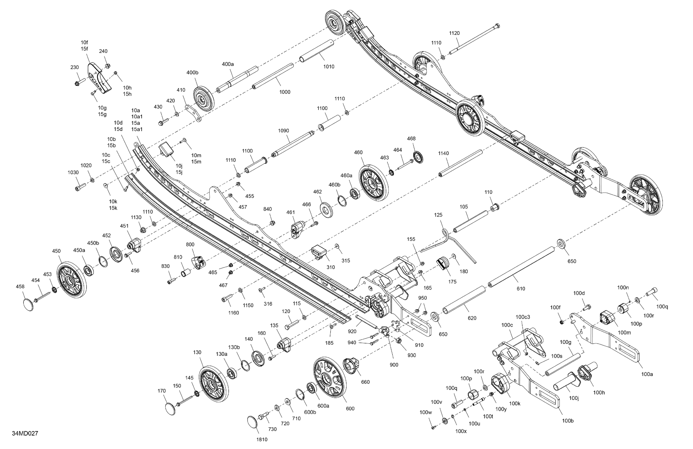 Ski-Doo North America - TUNDRA 600 ACE - LE - GNRA - Deep Black - 154X16X1.5CH Track, 2024 05- Suspension - Rear - Lower Section Diagram
