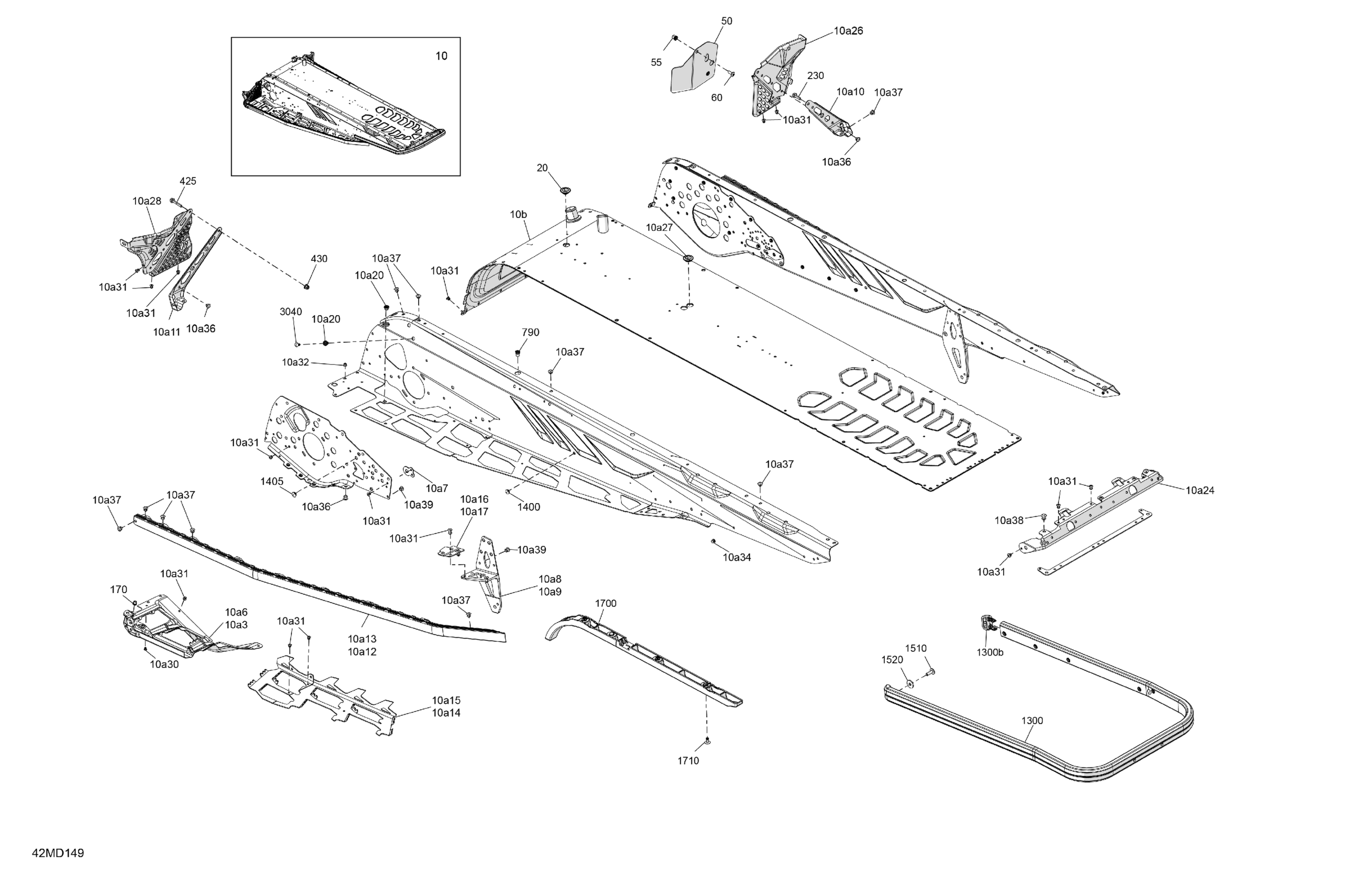 Ski-Doo North America - TUNDRA 600 ACE - LE - GNRA - Deep Black - 154X16X1.5CH Track, 2024 06- Frame - System - Rear Section Diagram