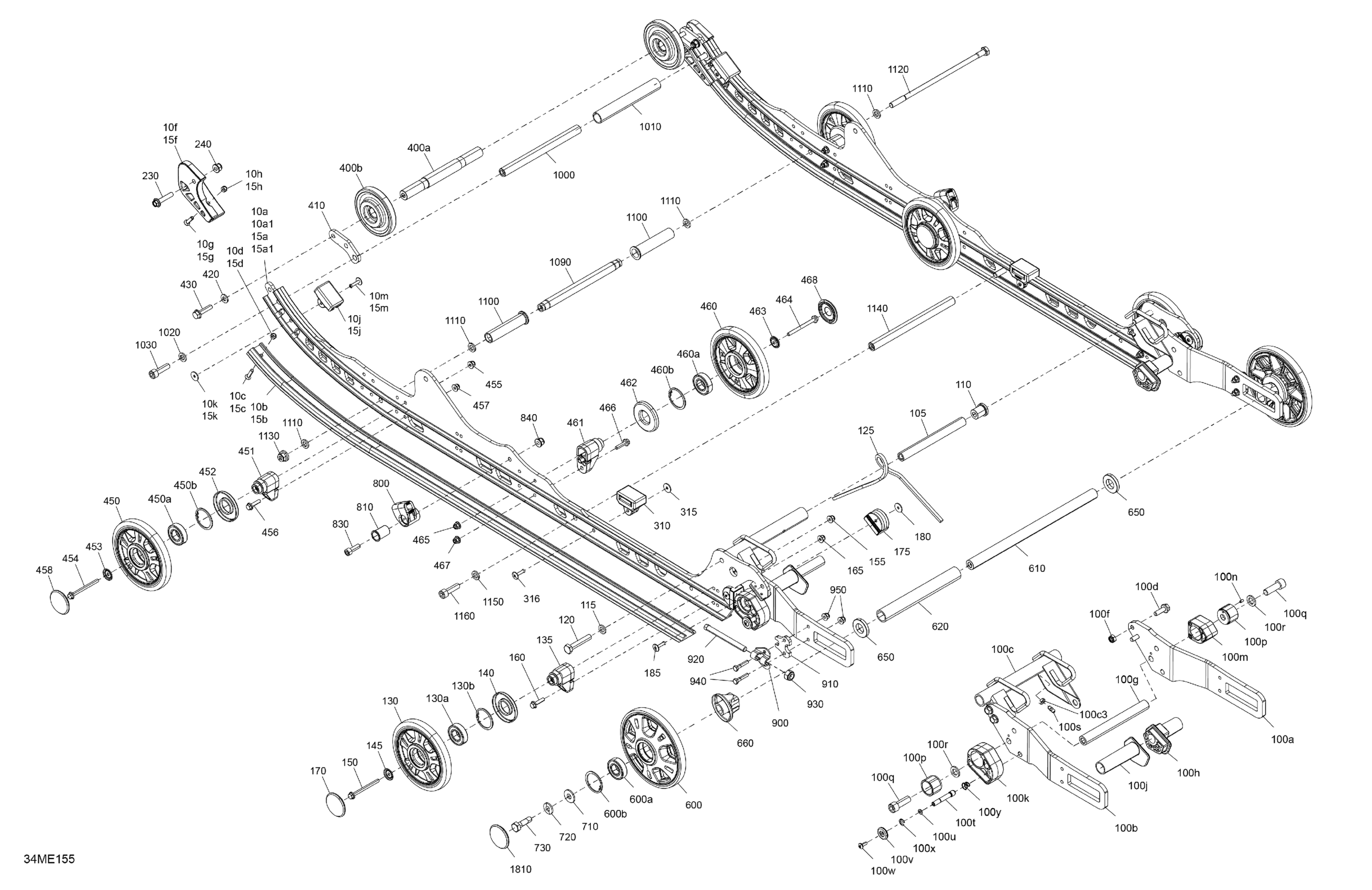 Ski-Doo North America - TUNDRA - 600 ACE - LE - GNSA - Deep Black - 154X16X1.5CH Track - 2025 05- Suspension - Rear - Lower Section Diagram