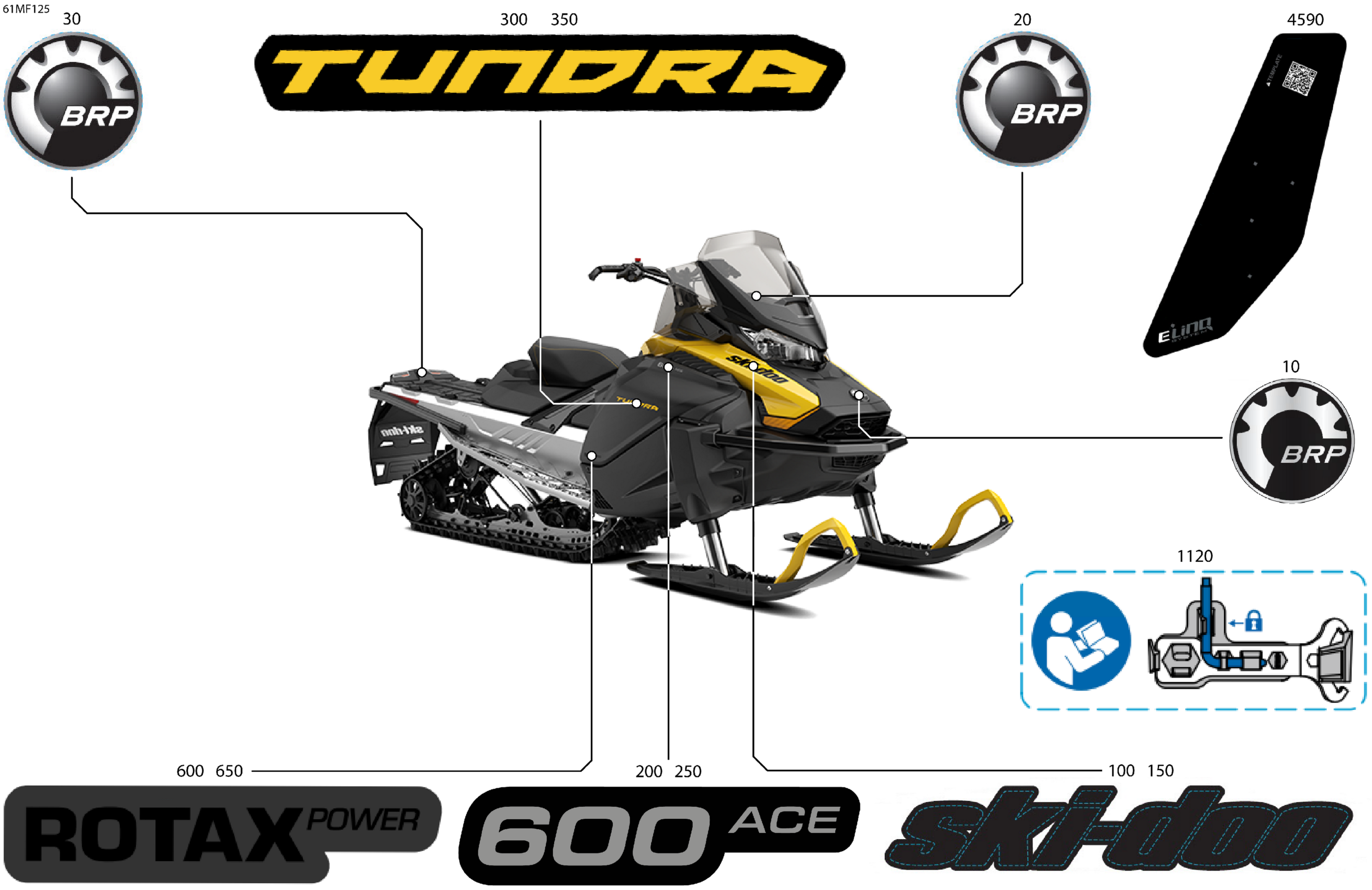 Ski-Doo North America - TUNDRA - SPORT - 600 ACE - GMTB - Neo Yellow - 15X146X1.6C Track, 2026 07- Body - Decals Diagram