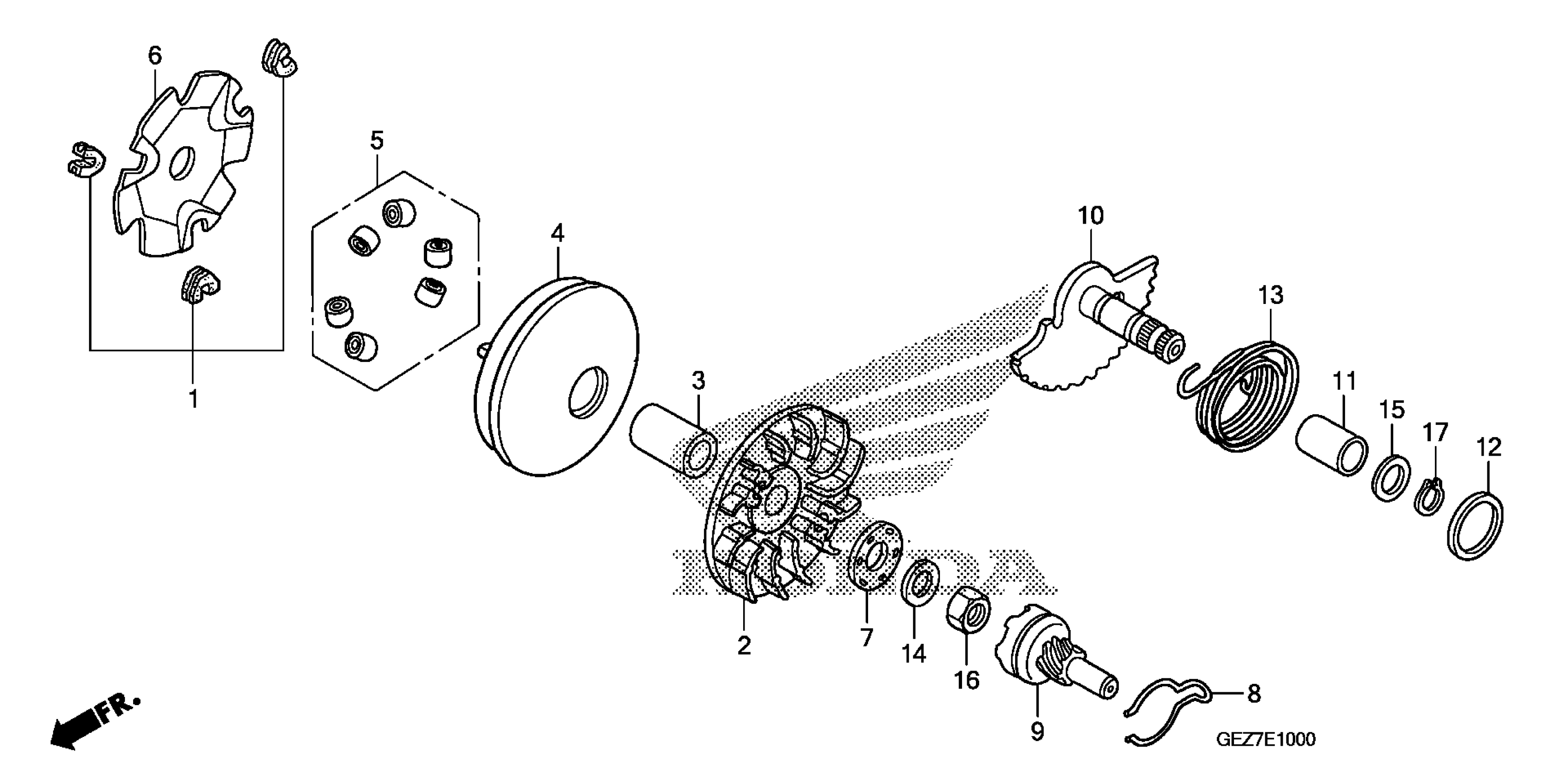 Honda NPS50AC (12) RUCKUS, JPN, VIN# JH2AF581-CK000001 DRIVE FACE + KICK STARTER SPINDLE Diagram
