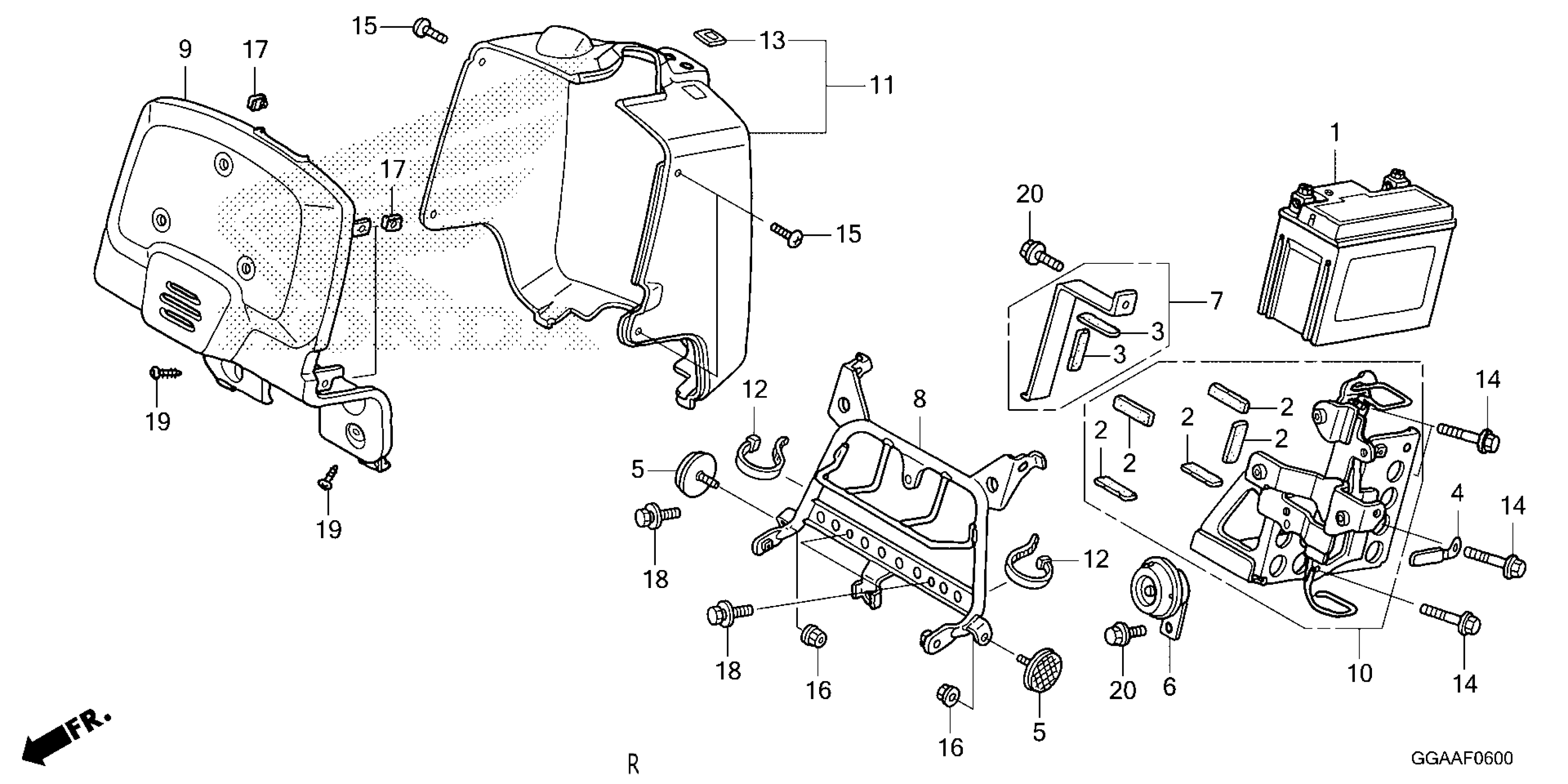 Honda NPS50AC (25) MOTOR SCOOTER, JPN, VIN# JH2AF581-SK300001 FRONT COVER@BATTERY Diagram