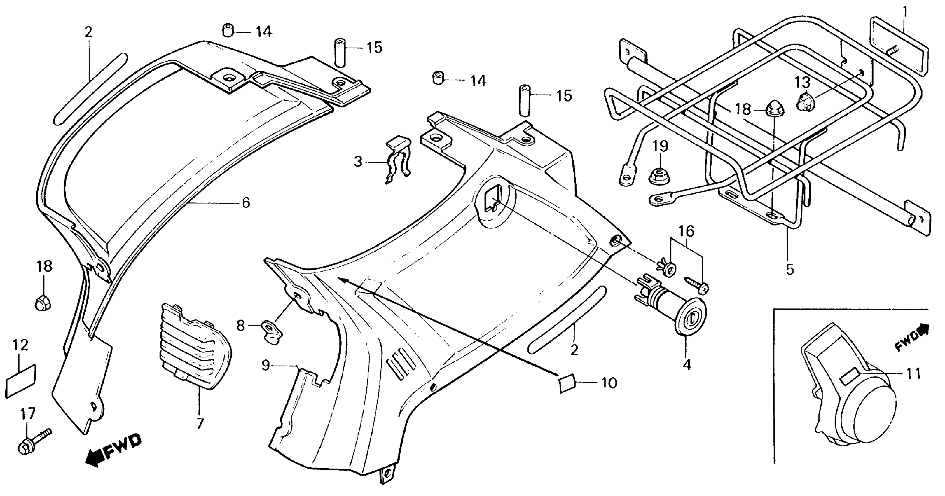 Honda NQ50A (84) SPREE, JPN, VIN# JH2AF060-ES000004 TO JH2AF060-ES027283 BODY COVER 84-86 Diagram