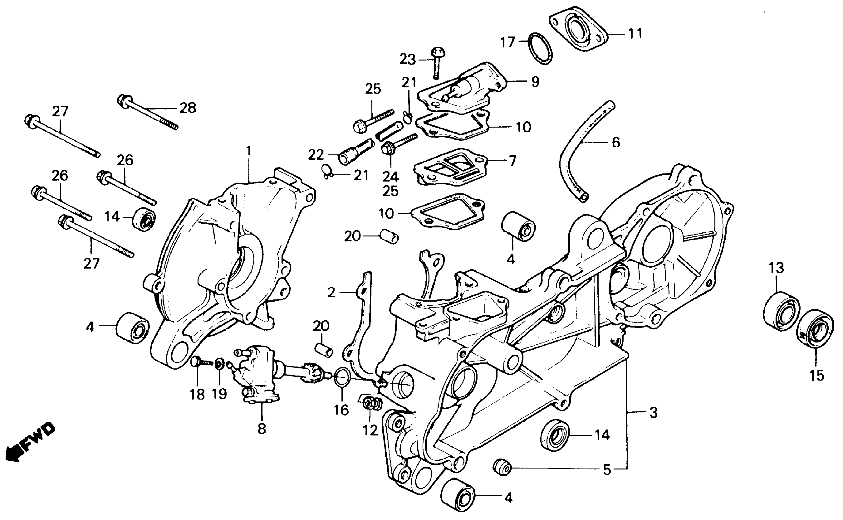 Honda NQ50A (87) SPREE, JPN, VIN# JH2AF060-HS300005 CRANKCASE + OIL PUMP Diagram