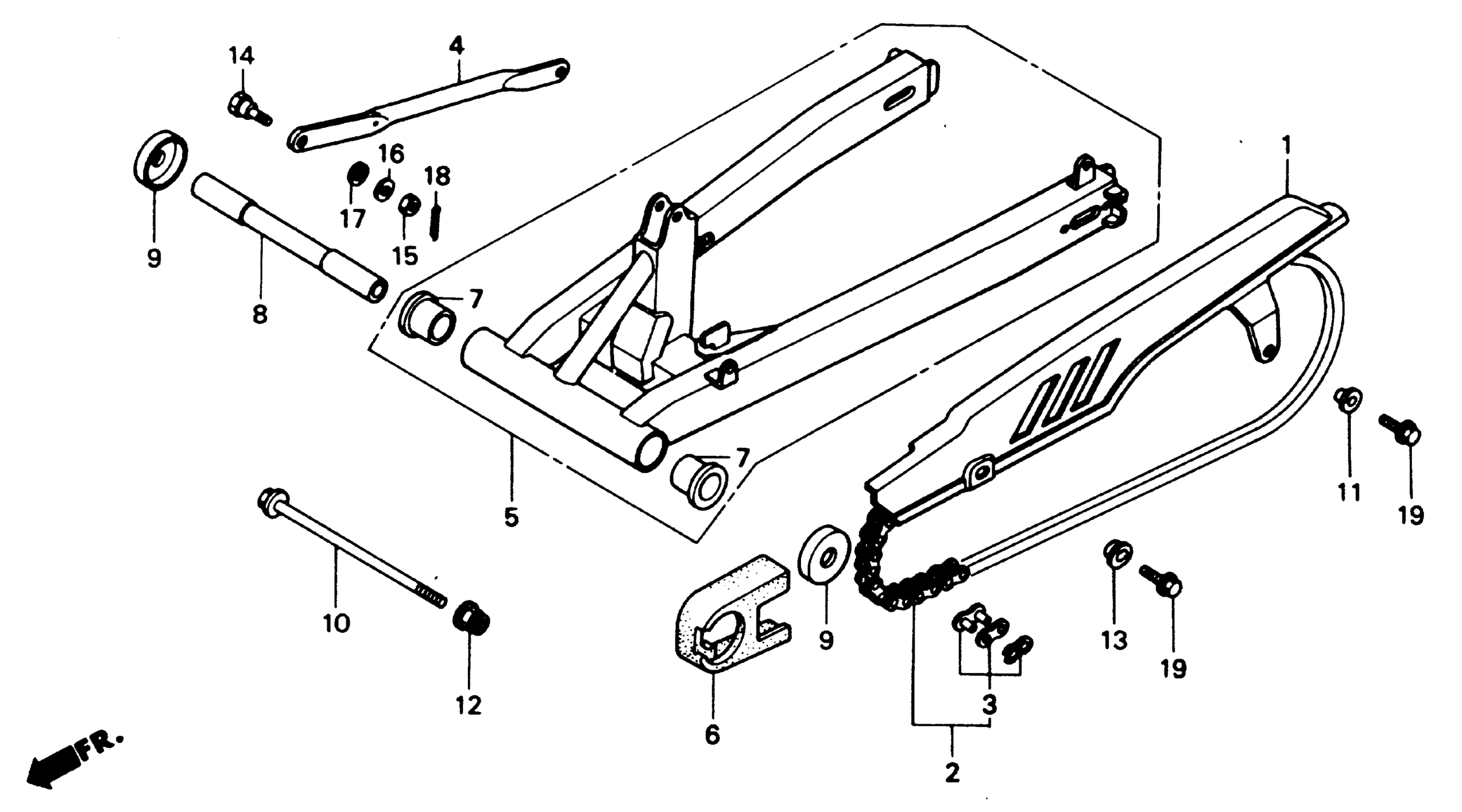 Honda NS50FA (90) MOTORCYCLE, JPN, VIN# JH2AC080-LK000004 SWINGARM Diagram