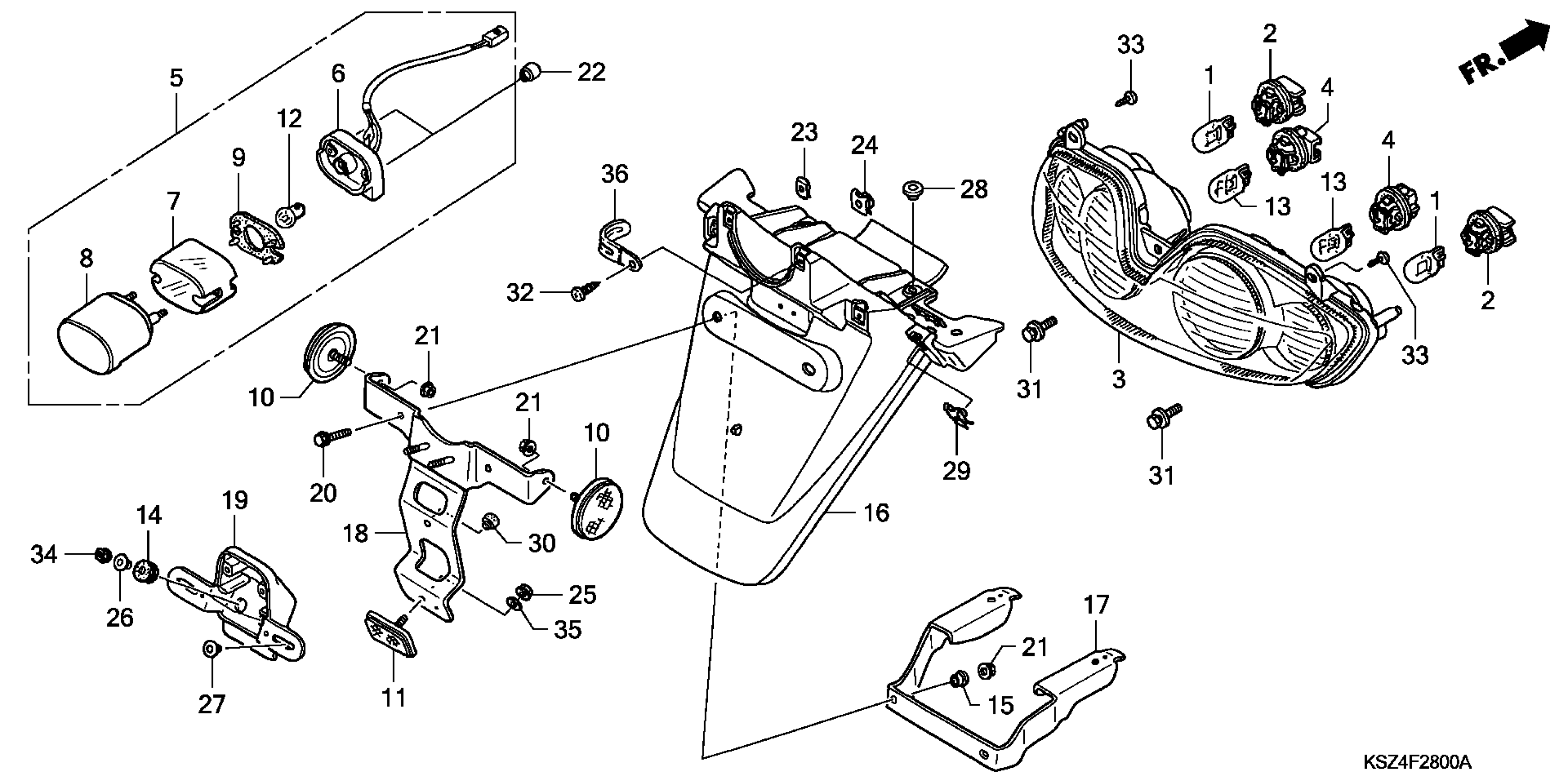 Honda NSS250ASSAC (07) MOTOR SCOOTER, JPN, VIN# JH2MF06H-7K300001 REAR COMBINATION LIGHT + REAR FENDER Diagram