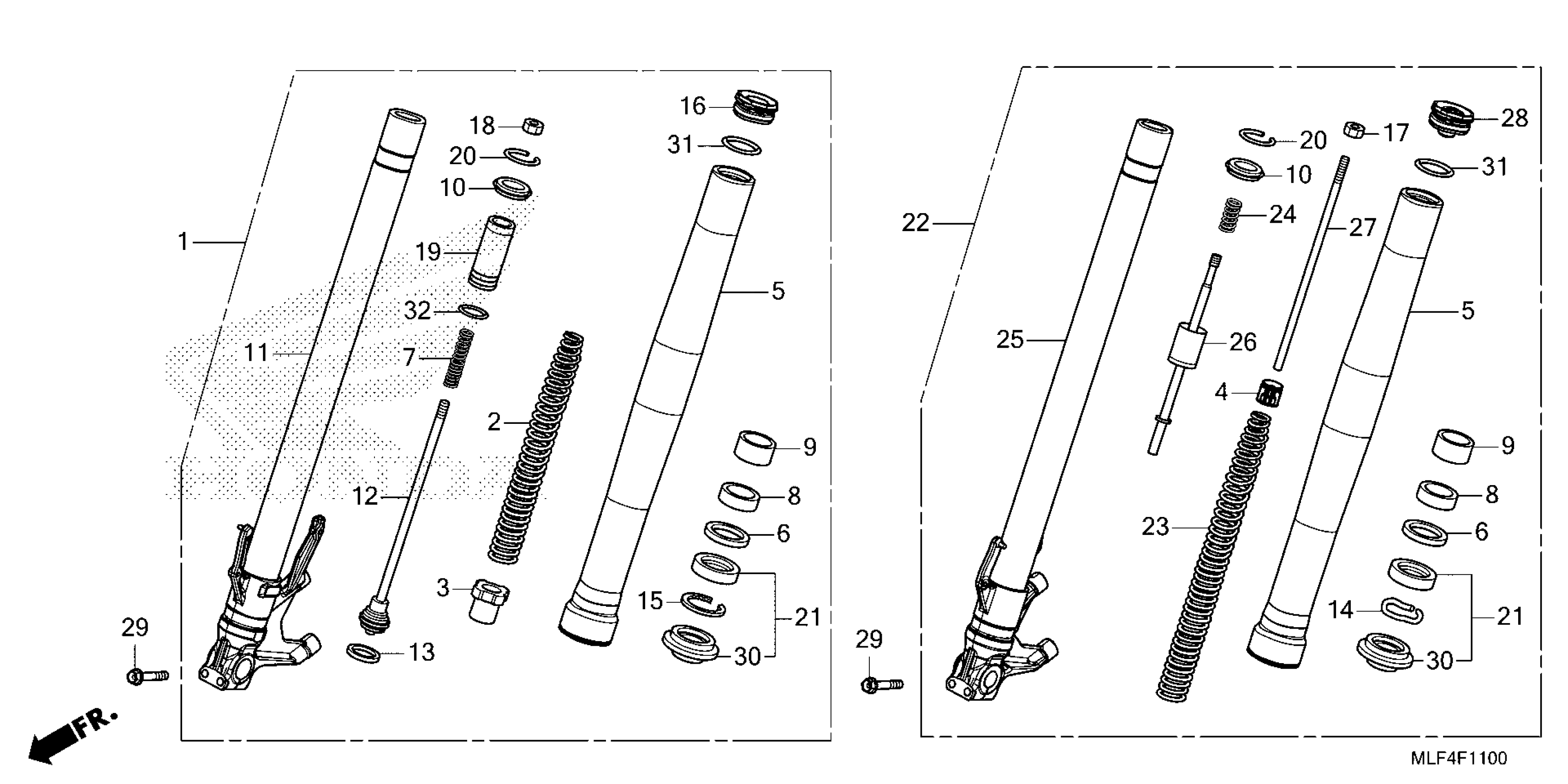 Honda NT1100DAC (25) MOTORCYCLE, JPN, VIN# JH2SC904-SK000001 TO JH2SC904-SK099999 FRONT FORK Diagram