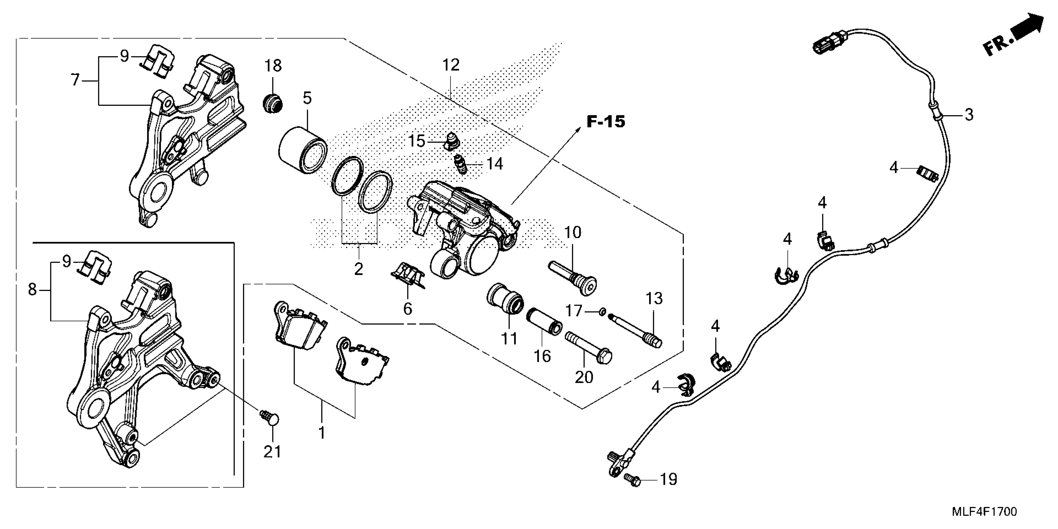 Honda NT1100DAC (25) MOTORCYCLE, JPN, VIN# JH2SC904-SK000001 TO JH2SC904-SK099999 REAR BRAKE CALIPER Diagram