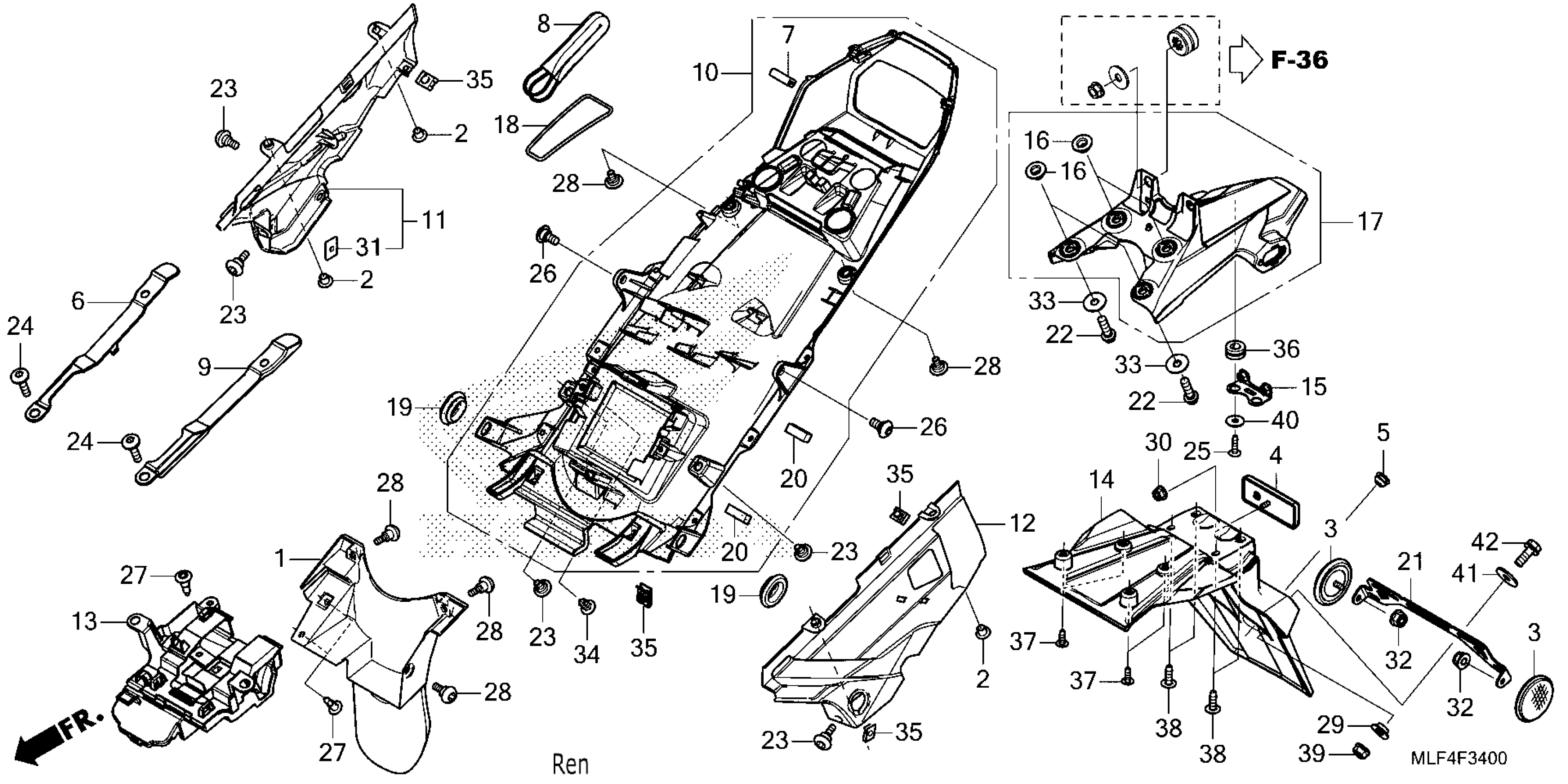 Honda NT1100DAC (25) MOTORCYCLE, JPN, VIN# JH2SC904-SK000001 TO JH2SC904-SK099999 REAR FENDER Diagram