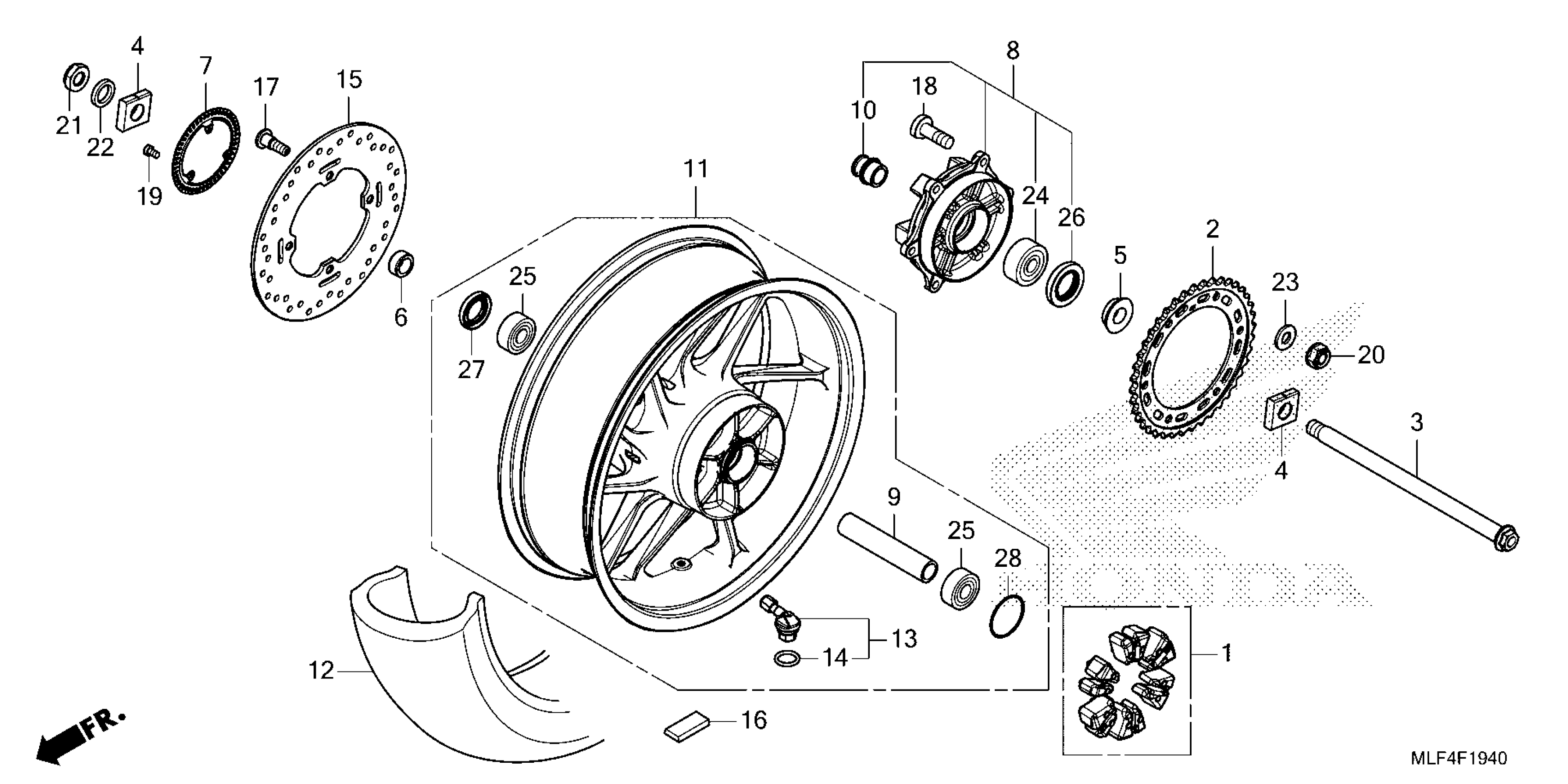 Honda NT1100DAC (25) MOTORCYCLE, JPN, VIN# JH2SC904-SK000001 TO JH2SC904-SK099999 REAR WHEEL Diagram