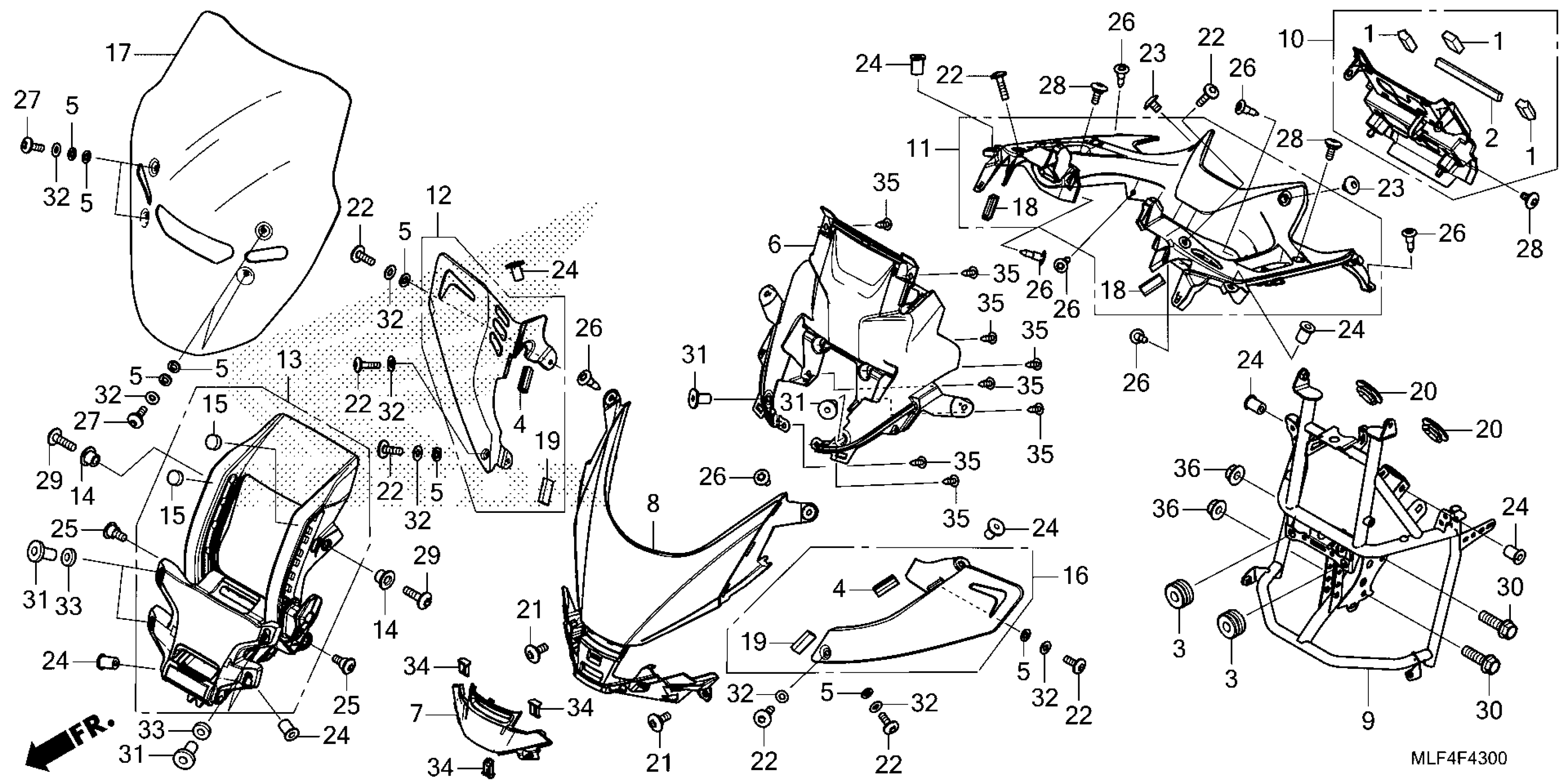 Honda NT1100DAC (25) MOTORCYCLE, JPN, VIN# JH2SC904-SK000001 TO JH2SC904-SK099999 UPPER COWL@WINDSCREEN Diagram