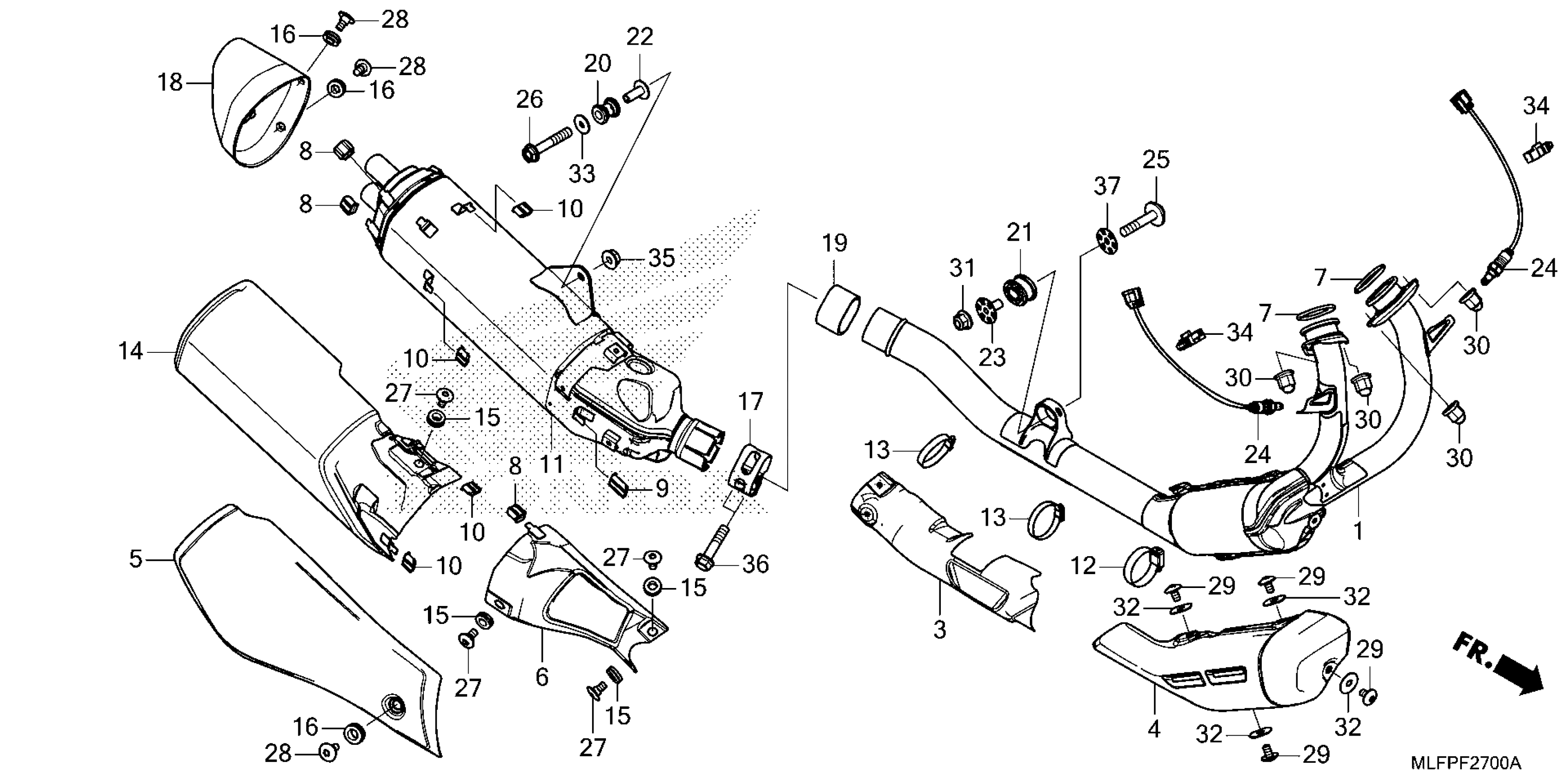 Honda NT1100PYB (25) MOTORCYCLE, JPN, VIN# JH2SC908-SK000001 TO JH2SC908-SK099999 EXHAUST MUFFLER Diagram