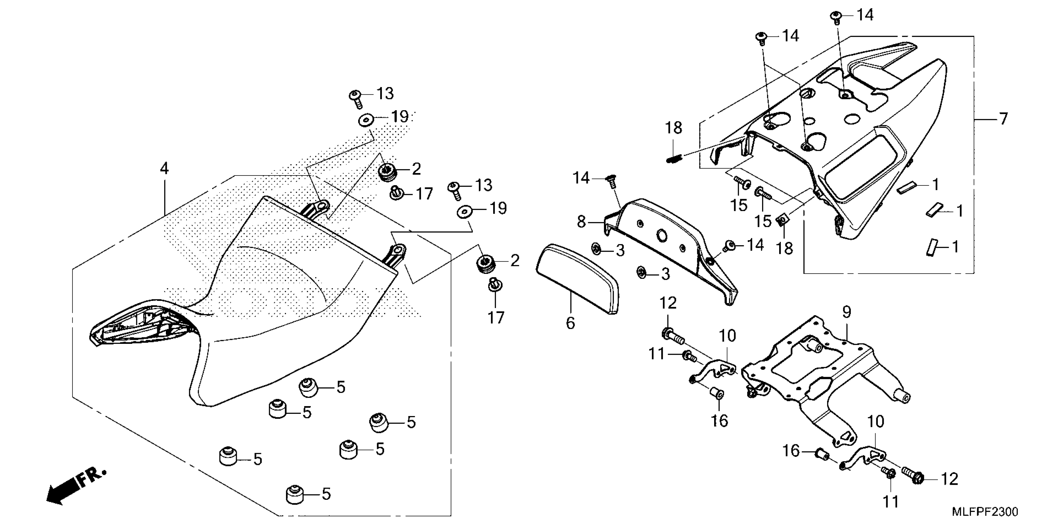 Honda NT1100PYB (25) MOTORCYCLE, JPN, VIN# JH2SC908-SK000001 TO JH2SC908-SK099999 SEAT@SEAT COWL Diagram