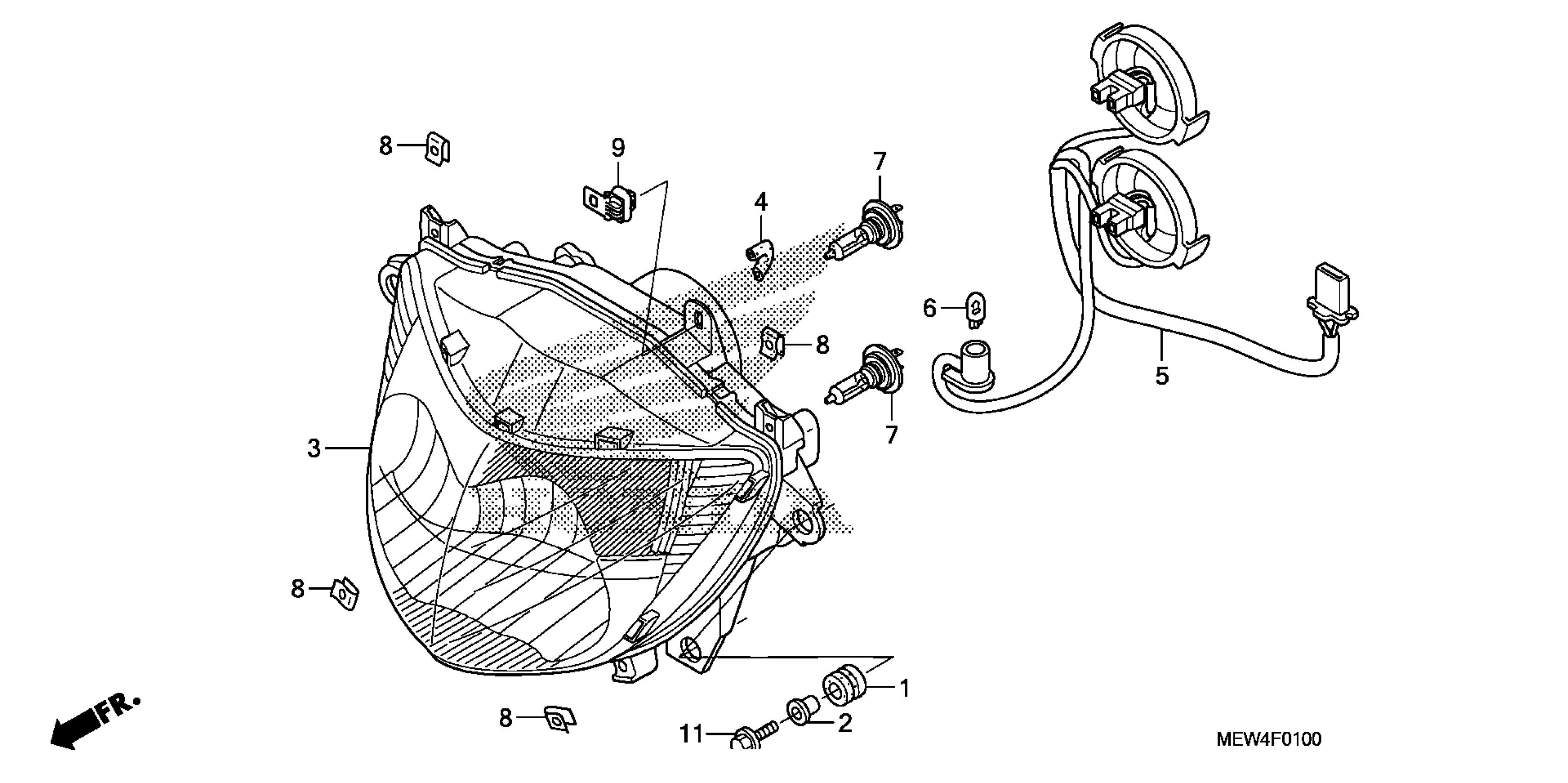 Honda NT700VAAC (11) NT700VA, ITA, VIN# ZDCRC595-BF010001 HEADLIGHT Diagram